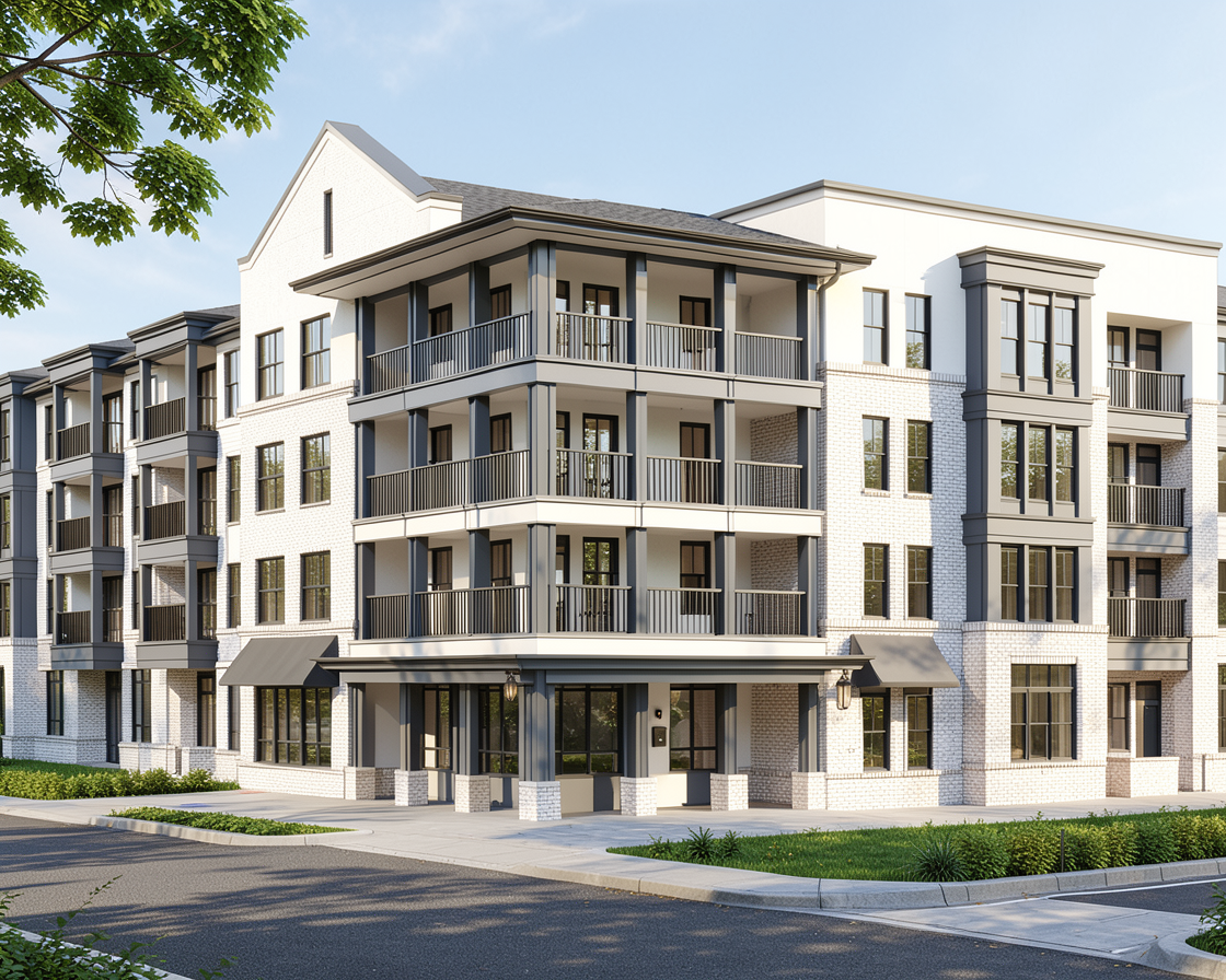 create a high end photorealistic architectural rendering of a modern beach townhouse based on the provided image important preserve all materials colors and finishes exactly as shown do not change or reinterpret any materials only enhance realism through lighting textures reflections and shading set the scene in a coastal neighborhood with similar surrounding beach homes the beach is on the left side include a subtle view of the ocean with atmospheric depth and light haze add minimal coastal landscaping palm trees dune grass and use soft midday or late afternoon sunlight with realistic shadows and ambient occlusion rendering style should be ultra realistic high resolution with physically accurate lighting natural contrast and a slightly wide angle non distorted camera avoid stylization oversaturation distorted geometry or unrealistic effects