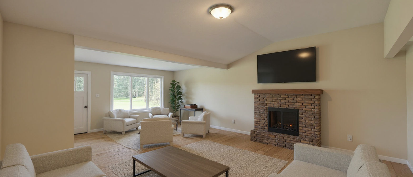 render this image in a realistic style maintaining the exact same composition furnishings and design without adding or removing elements