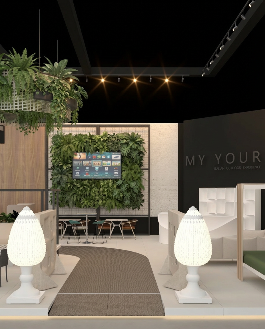 enhance the vegetation with a refined architectural and minimal approach improve realism density and depth while maintaining a clean and controlled composition use a limited selection of plant types avoiding excessive variety or wild growth leaves should show natural imperfections slight color variations and realistic thickness with subtle light interaction soft translucency and gentle shadowing increase detail and layering but keep the vegetation elegant structured and intentional the overall look must remain sophisticated calm and contemporary not lush not tropical not jungle like vegetation should feel curated and designed not spontaneous or overgrown important do not modify materials textures lighting furniture or composition do not change the design identity only enhance vegetation while preserving the minimal and premium aesthetic
