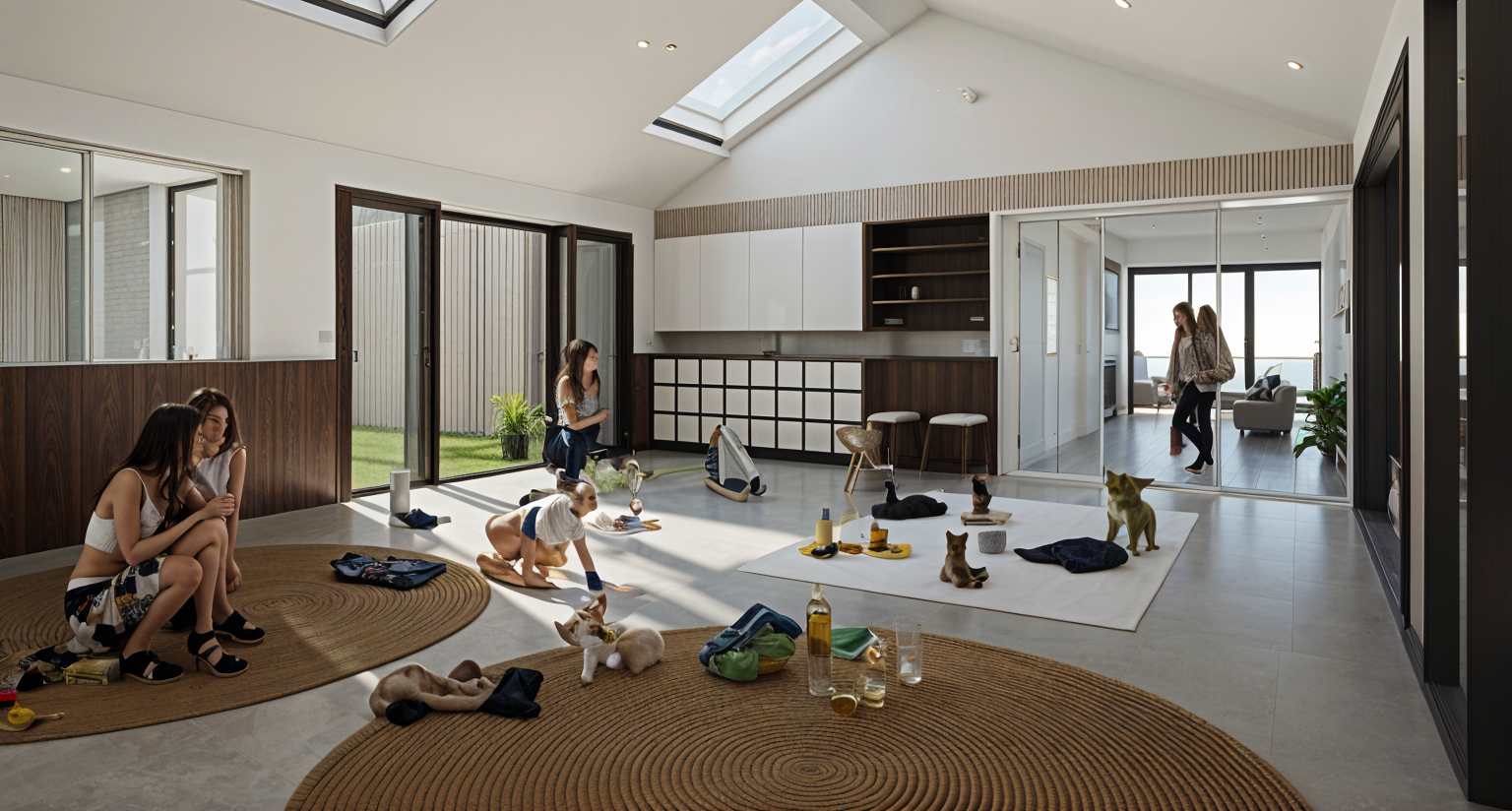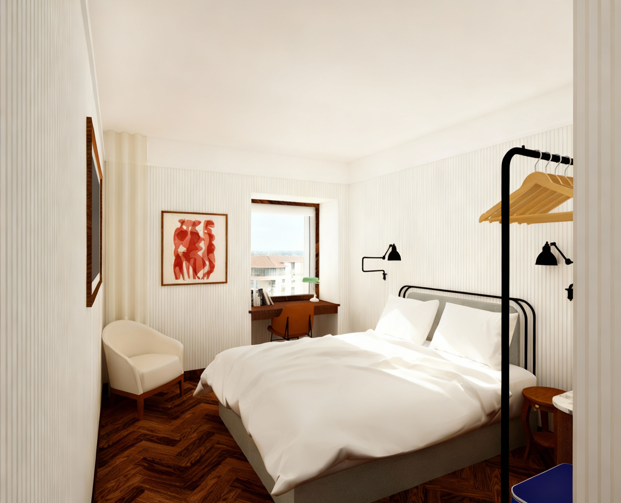 change external view to a street make the glazing less transparent contain some manifestation to them of a pattern put blinds to external window make flooring a vinyl timber effect