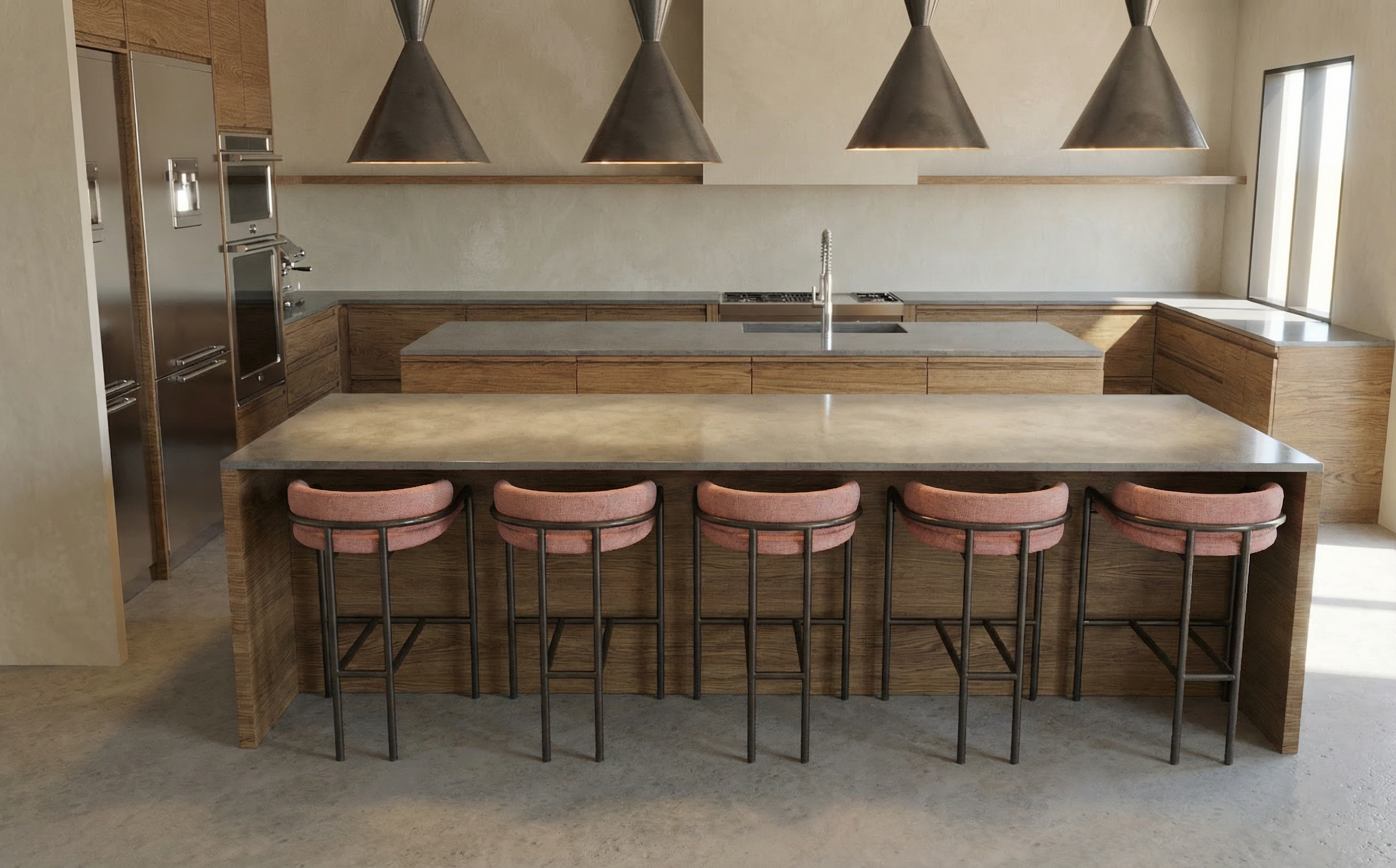 well lit forest background daylight maintain materials white wash wood roof only white railing white walls maintain kitchen tile