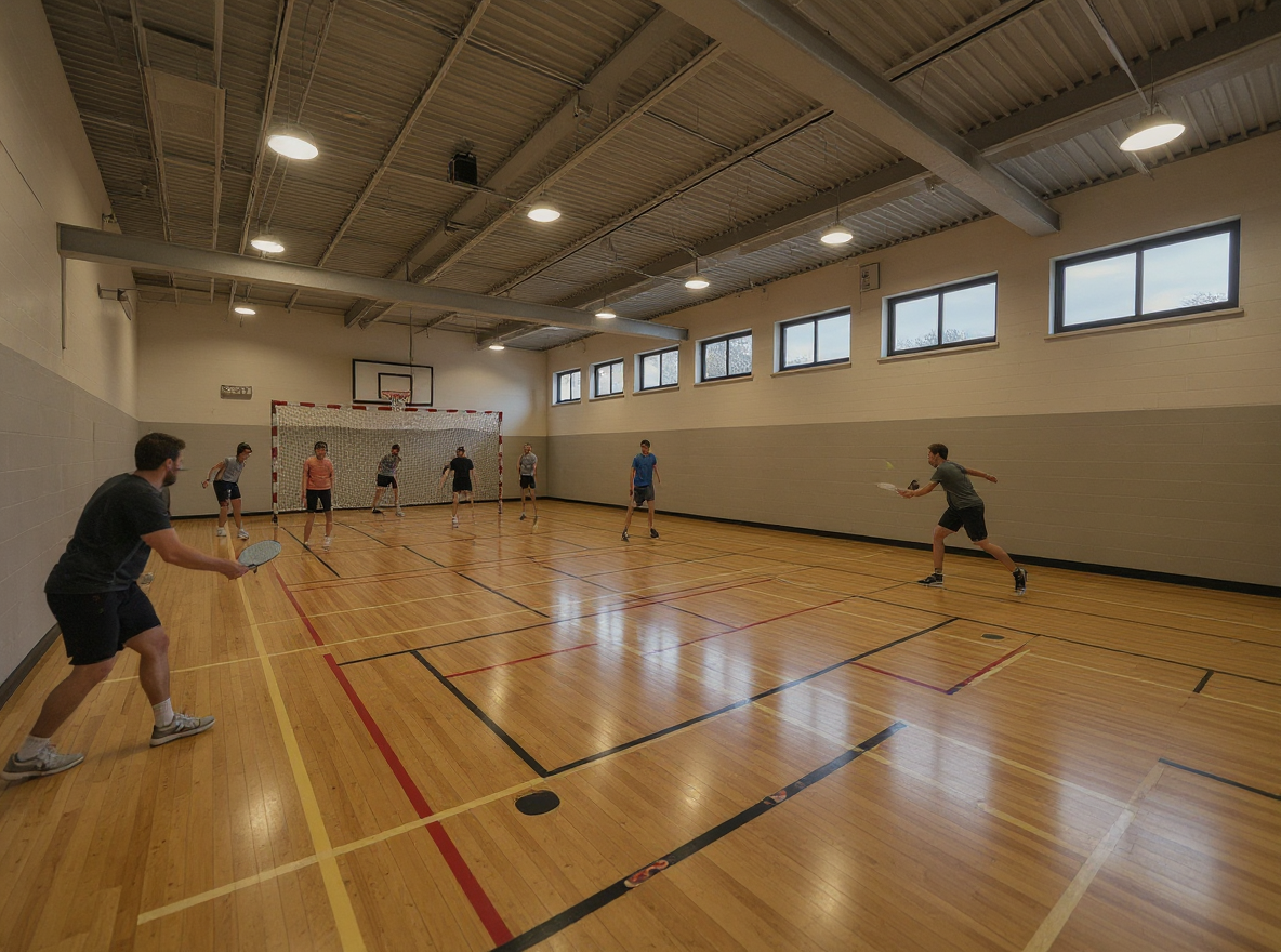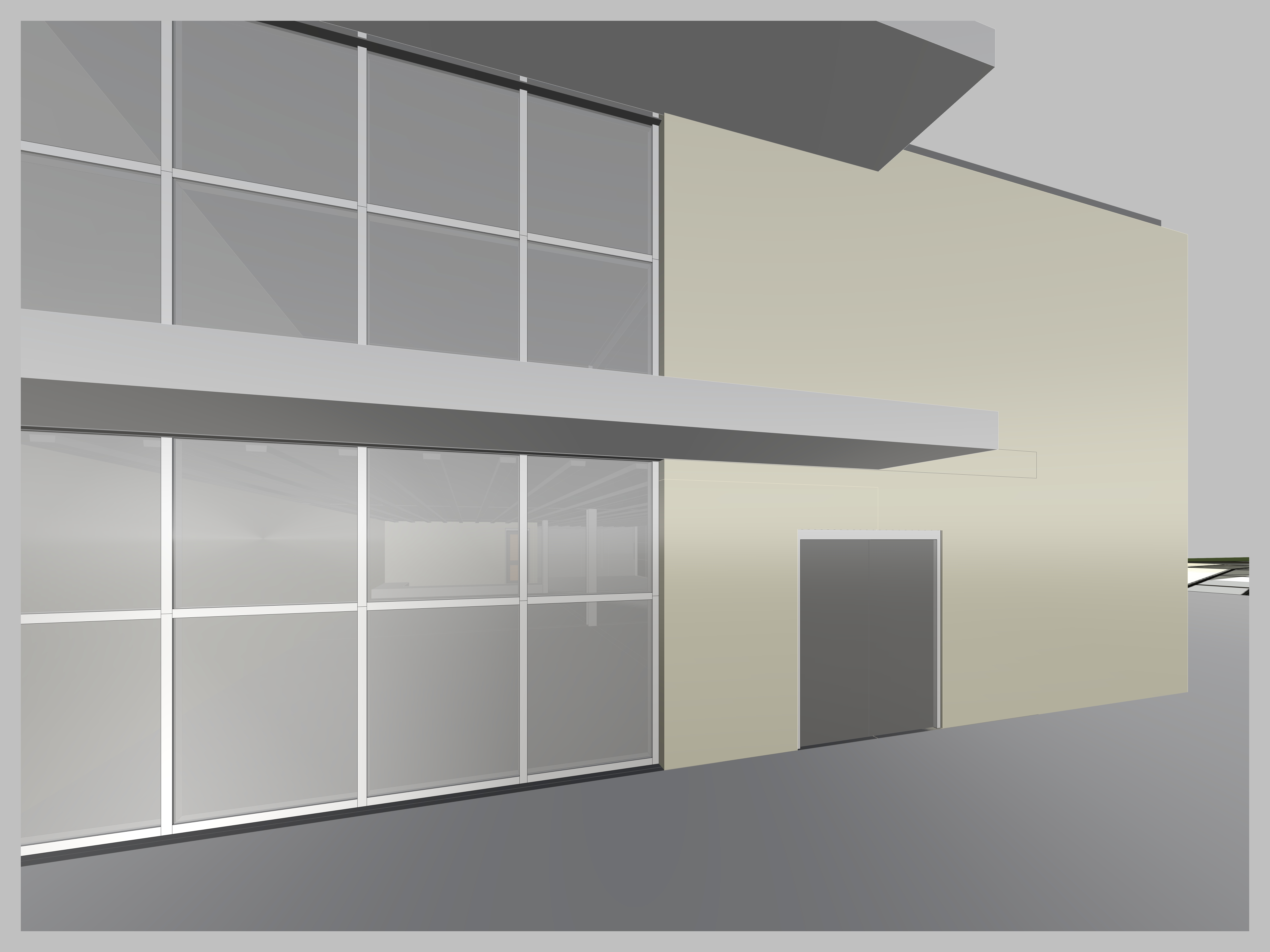 modern architectural building with a sleek design featuring large glass windows and minimalist structure the walls are a soft cream color bricks contrasted by the dark gray roof and door the glass windows reflect a subtle hint of light blue adding vibrancy create a serene airy atmosphere with a clear sky and soft diffused daylight that highlights the clean lines and geometric shapes of the structure the overall setting should feel calm and spacious accentuating the modern aesthetic