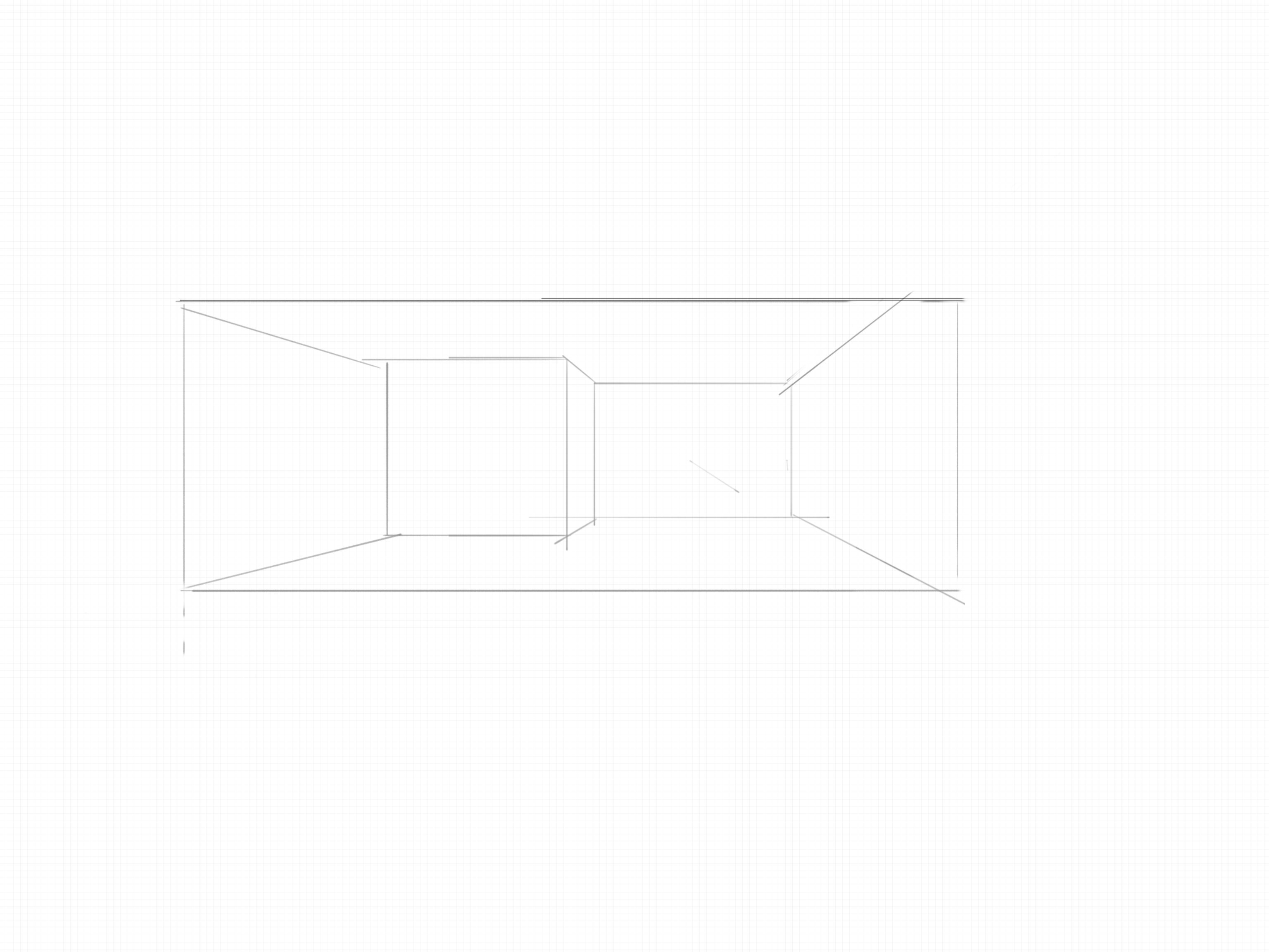 this is the sketch of a empty space mantain volumens the walls floors and ceiling in white use soft studio lightning