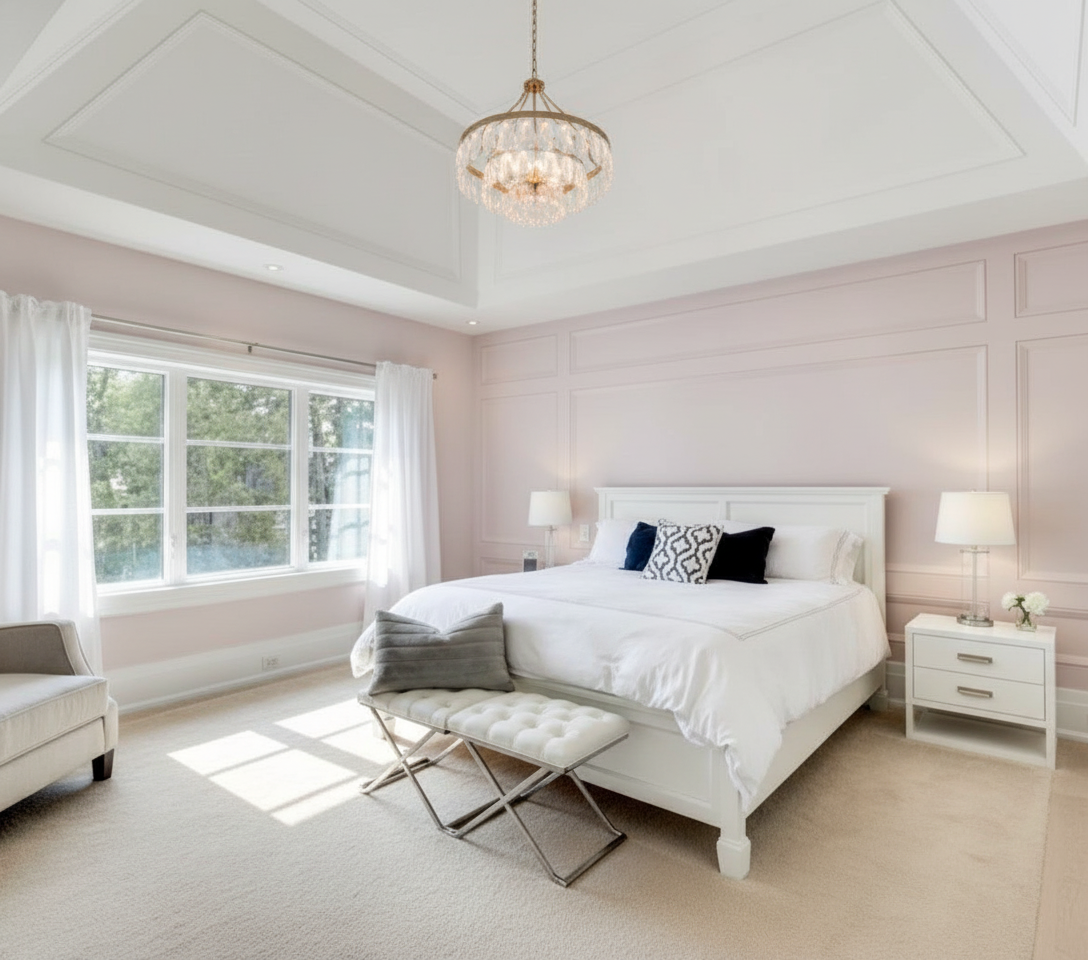 create a hyper realistic visual of this house design add planting to the front make the driveway a cream resin bound finish and add trees in the background