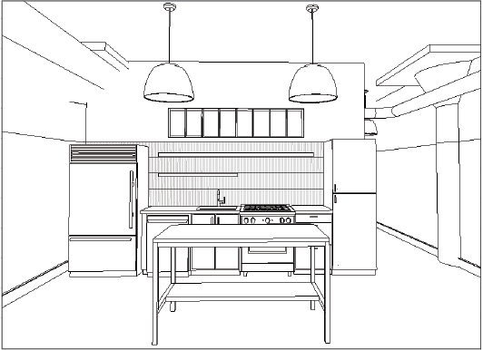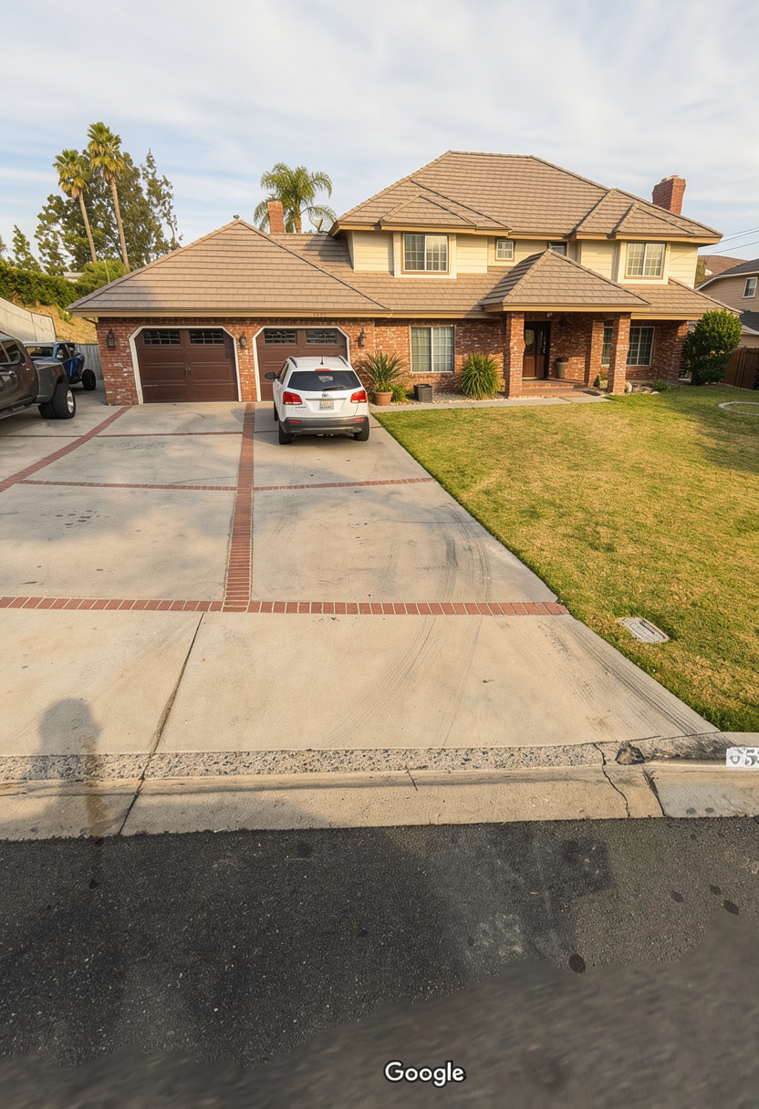 modern warm residential loft kitchen polished concrete floors white walls and white concrete ceilings are painted smooth creamy white like the paint chip in the photo 2x6 glossy off white tile backsplash vertically stacked floating shelves on backsplash wall are light oak kitchen cabinets are a light natural maple like the sample in the photo white marble countertops on back kitchen counter like the sample in the photo base of island counter in foreground painted sage green counter on island is a rich darker maple butcherblock sage green metal pendants like the light fixture in the photo use a combination of soft interior lighting and exterior golden hour daylight do not change any building geometry do not change or add any architectural elements do not change windows or doors keep camera view and angle the same do not add any decor not shown in reference image window above tiled wall has painted white metal frame and mullions