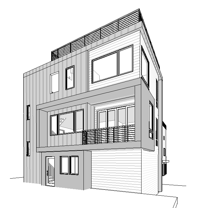 create a photorealistic image of a modern house surrounded by well kept vegetation and trees in the background