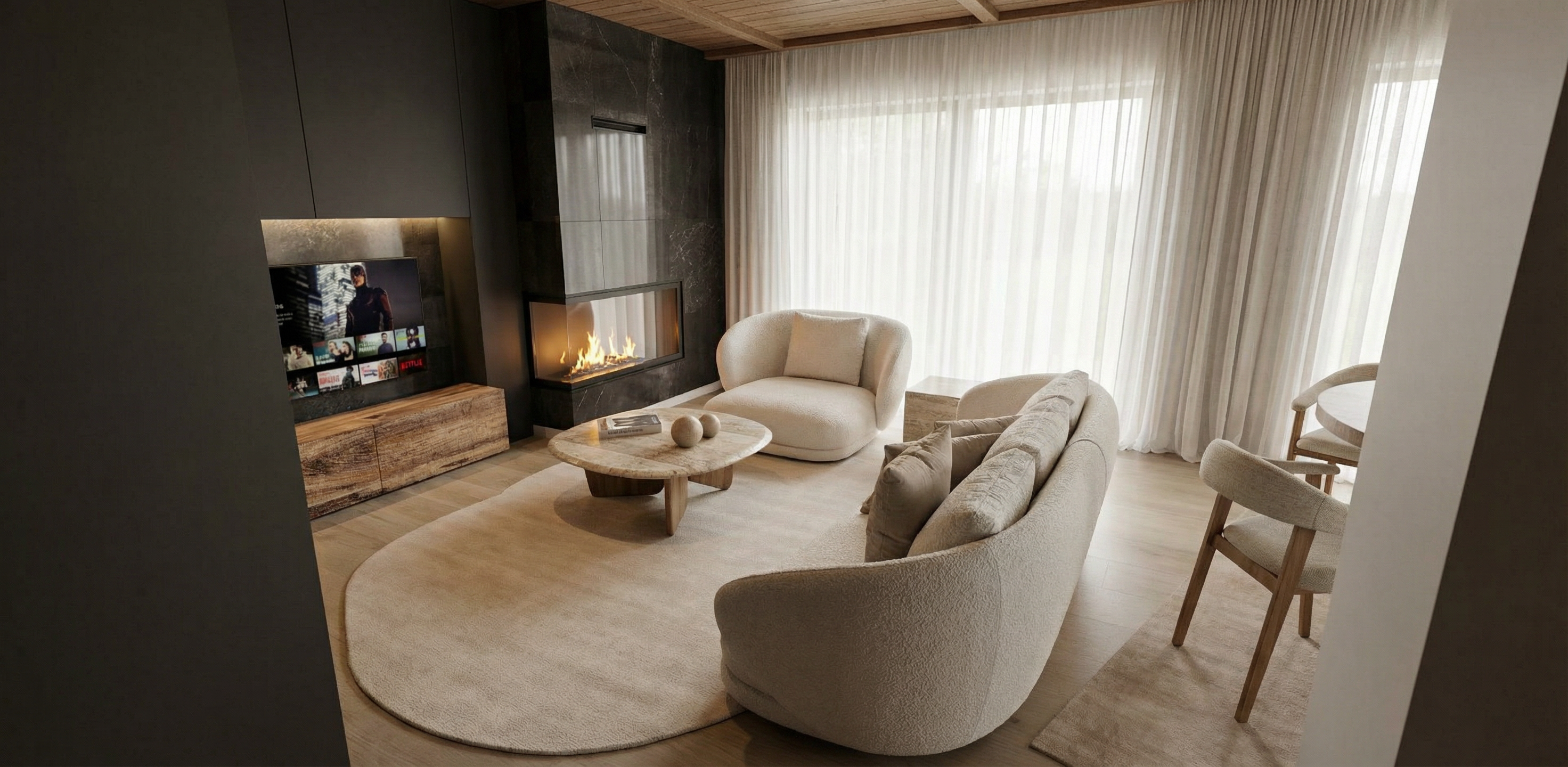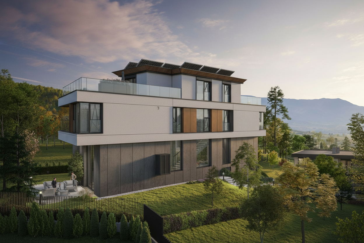 make ultra realistic image without changing any structures shapes design and materials do not change the jpeg size add lights to the wall lamps use soft wood texture decking to the wood floor part