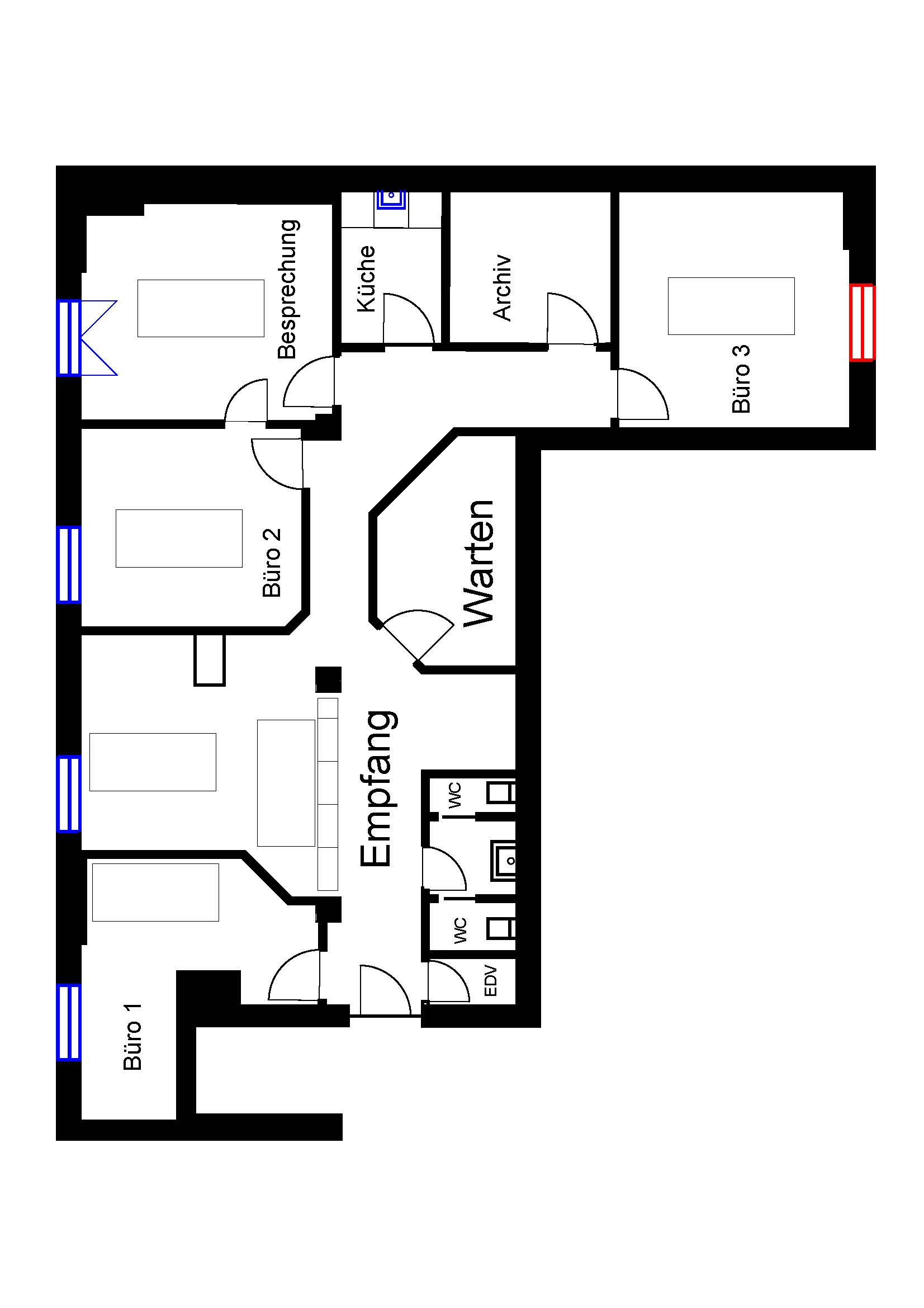 convert this floor plan into a realistic isometric 3d view of a full house show the space from an elevated angle with furniture walls and details visible convert this floor plan into a realistic isometric 3d view of a full house show the space from an elevated angle with furniture walls and details visible create an aesthetically pleasing architectural floor plan based on the provided image please note that this is a law firm for scale the distance between the black boxes in the center of the room is 4 meters please do not remove any existing walls from the floor plan where the word empfang appears the reception area should be designed with a counter and a large desk in besprechung the meeting room should be included featuring a large table and six chairs in each b ro there should be an office in each with a desk and a chair use a clean modern style with a soft gray background rgb 240 240 240 to highlight details the floors are all light oak the walls are white modern lighting artwork on the walls the desk furniture is black and gray the chairs are black use the same furniture as shows on the plan do not change the orientation of the floorplan