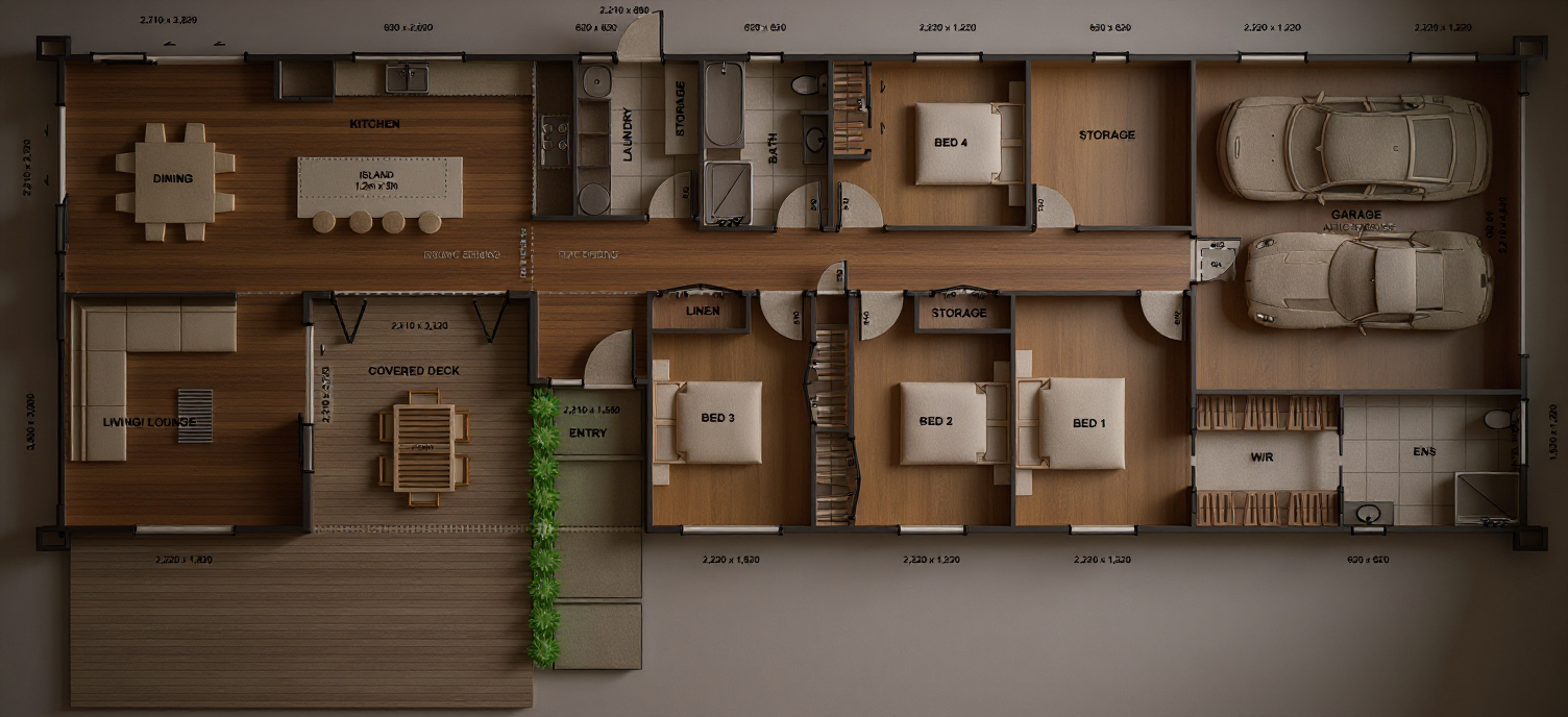 create a highly realistic image of the interior space and maintain the geometry modern scavolini warm kitchen soft lighting coming through show a minimal pantry in the open door to the right add coffered ceilings and feature ceiling light over the island