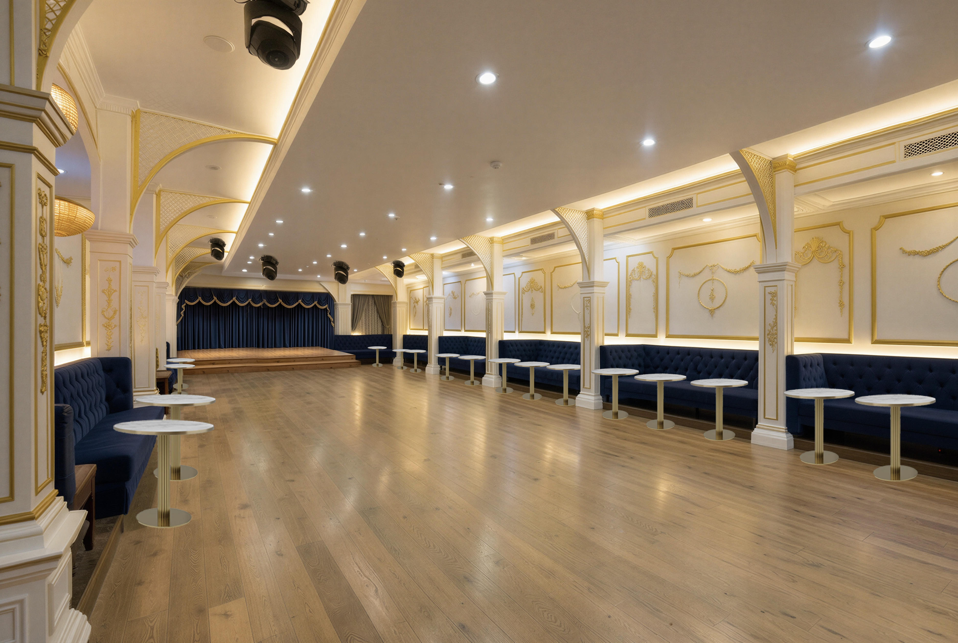 keep visual the same make it more realistic add shadow under the tables make it ambient and stylish