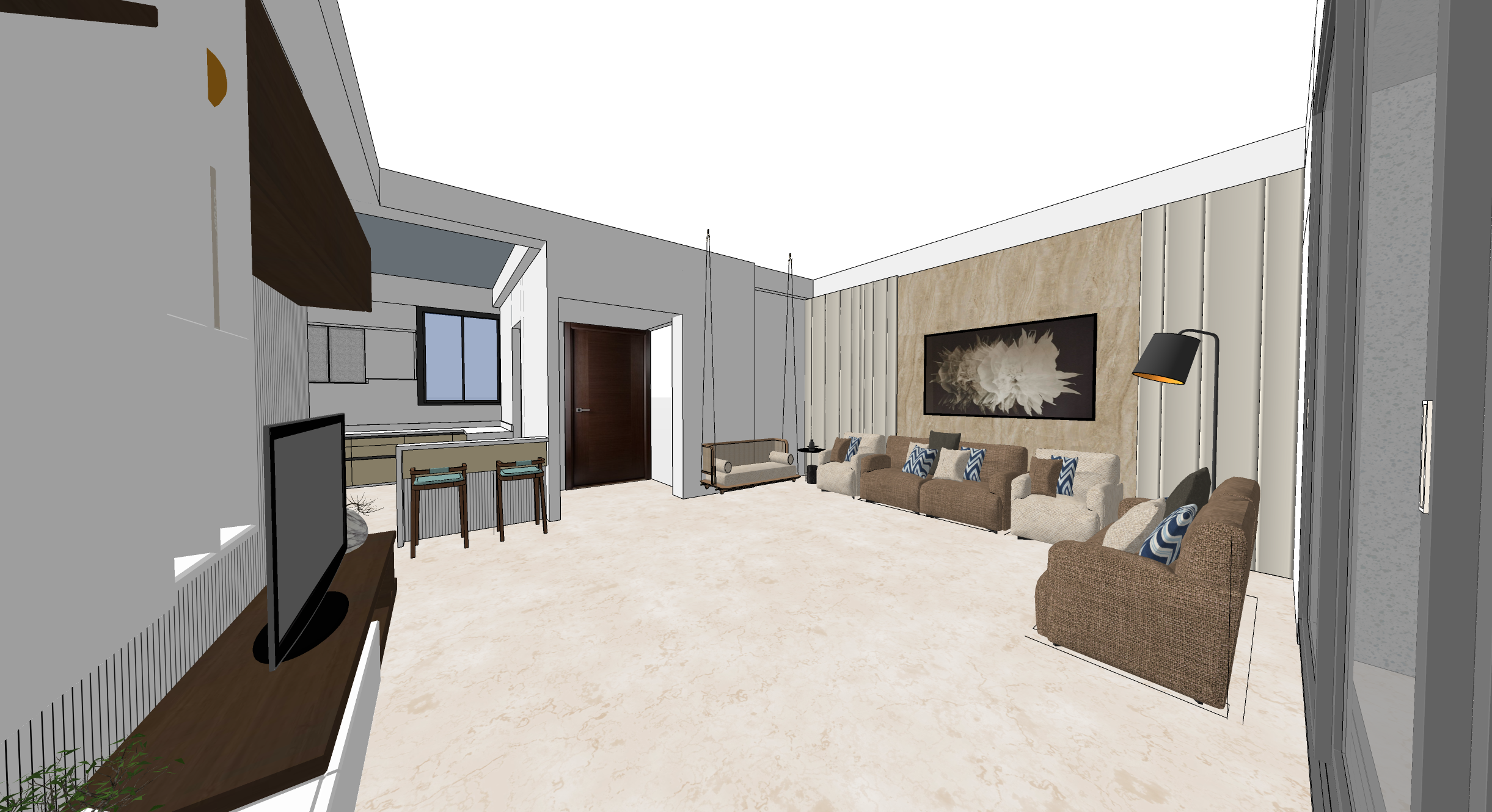 realistic livingroom image with botticelli marble view of main door in th vestibule and beautiful modern kitchen flooring