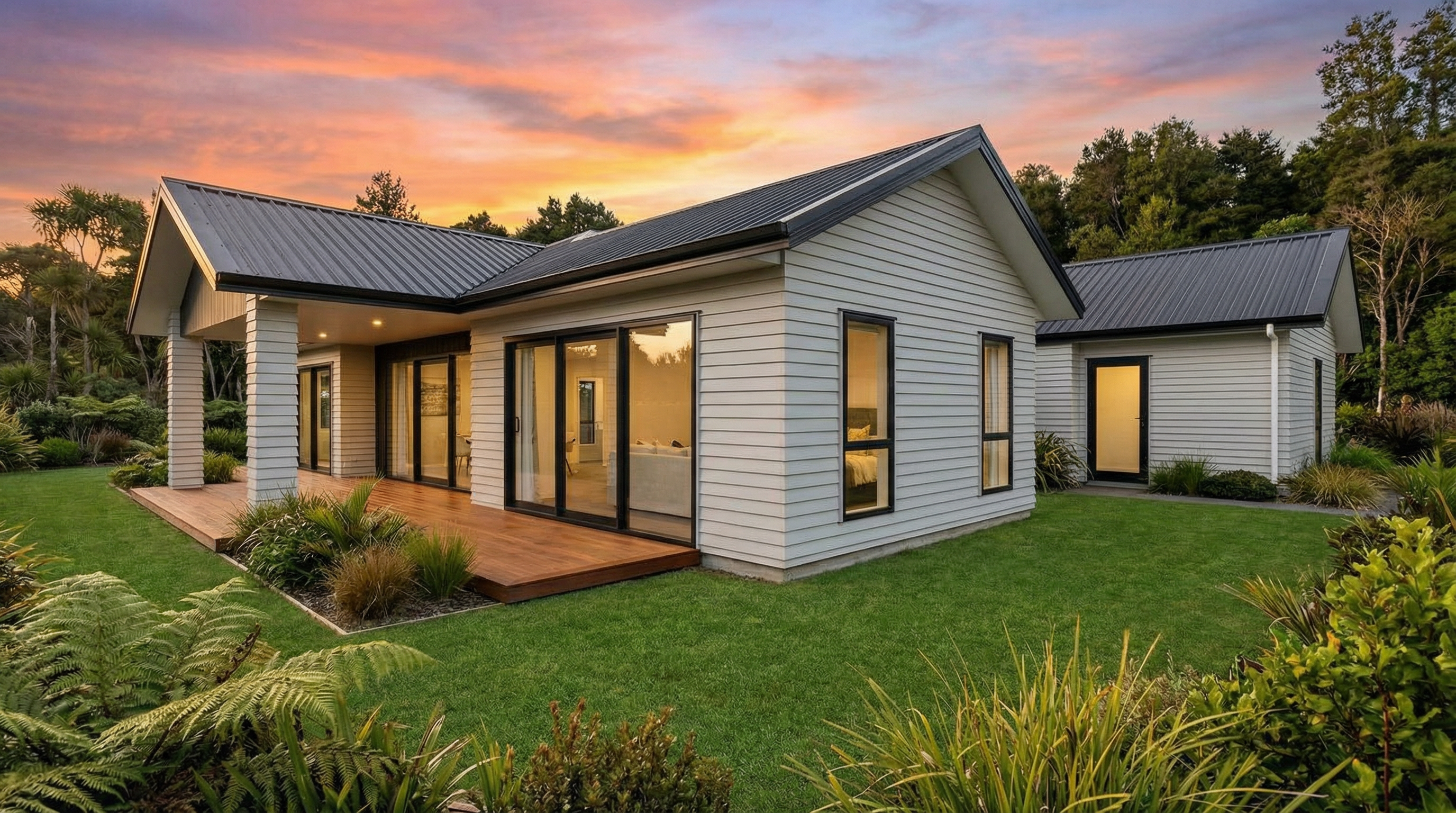 lawns native planting background trees sunset