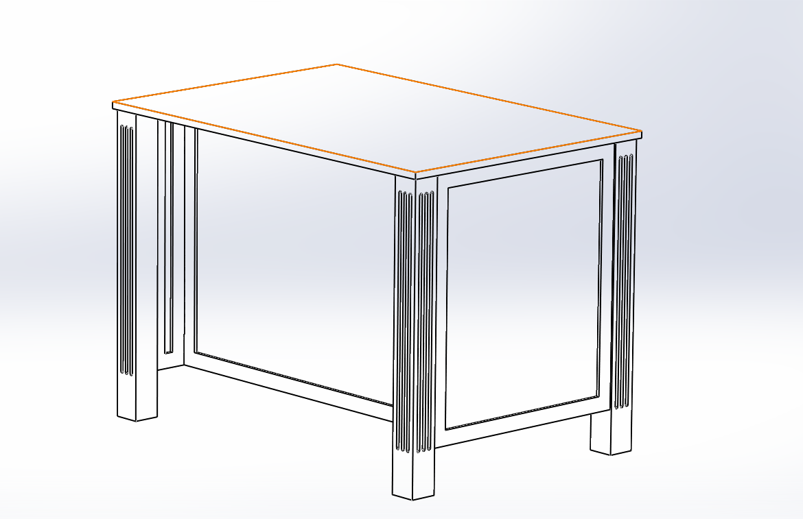 a dark walnut island with solid shaker style panels and a white marble top with fluted leg details architecture
