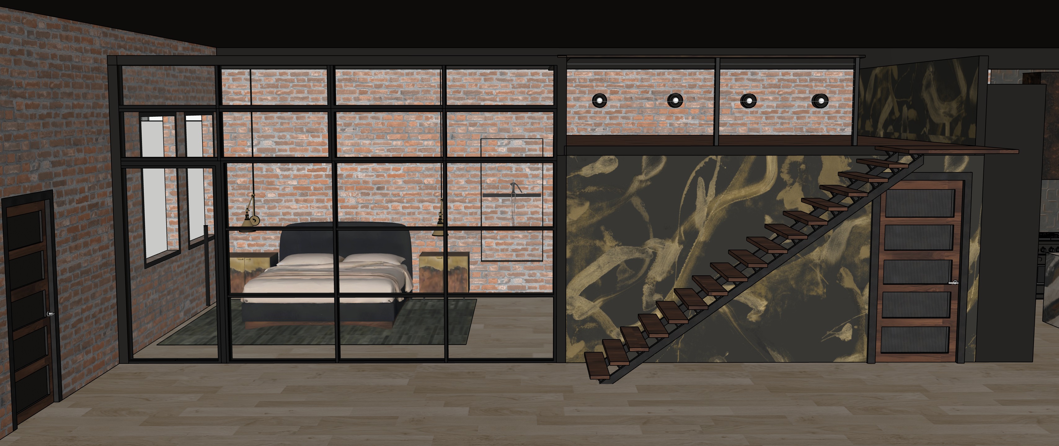 industrial loft apartment at sunset white oak floors black open joist ceiling