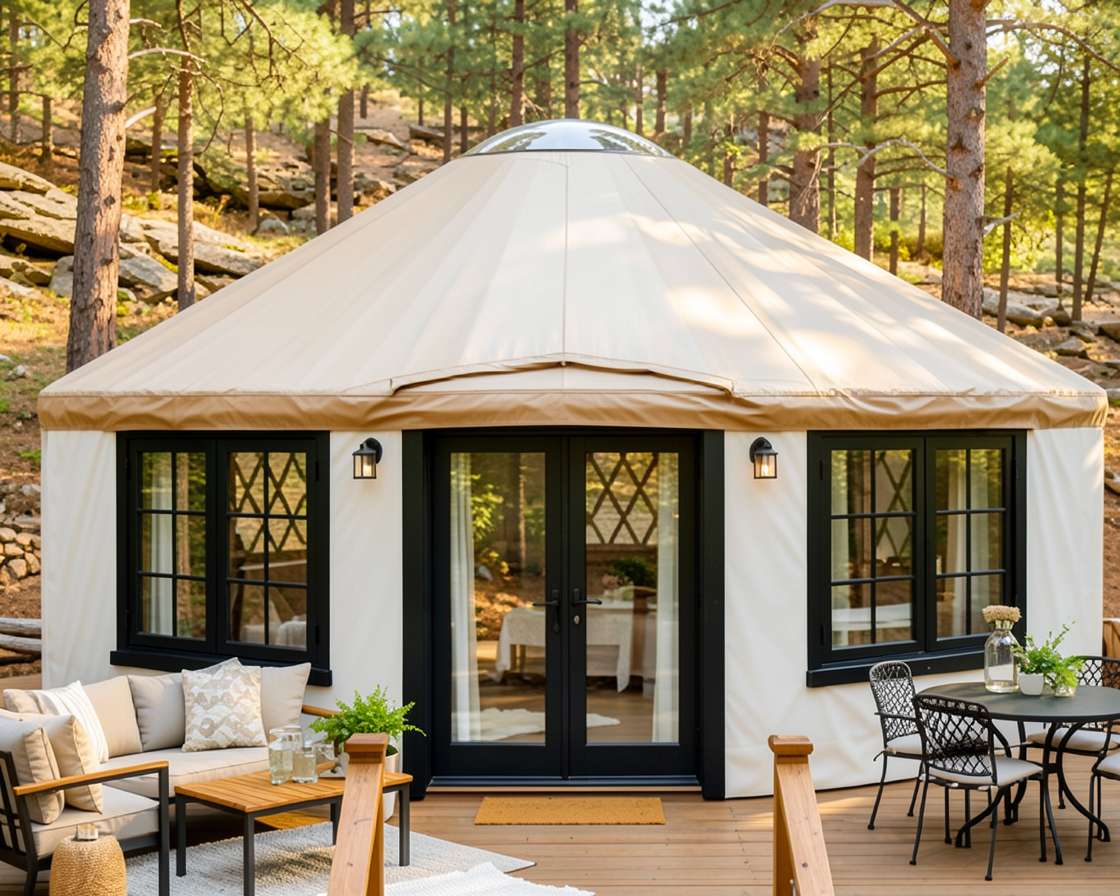make this image a photograph of a staged kitchen make the upper painted cabinets the same color as the window casing accessible beige and keep the taj mahal quartzite tops on the perimeter and up the backsplash on the wall behind the range
