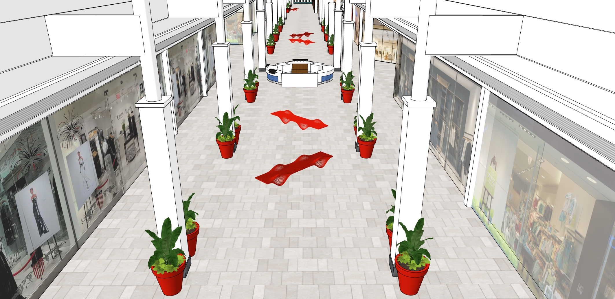 rendering this iso view satin finish tile floor in soft beige gray tone the bench is not solid it s made of curved of slots with stain red finish