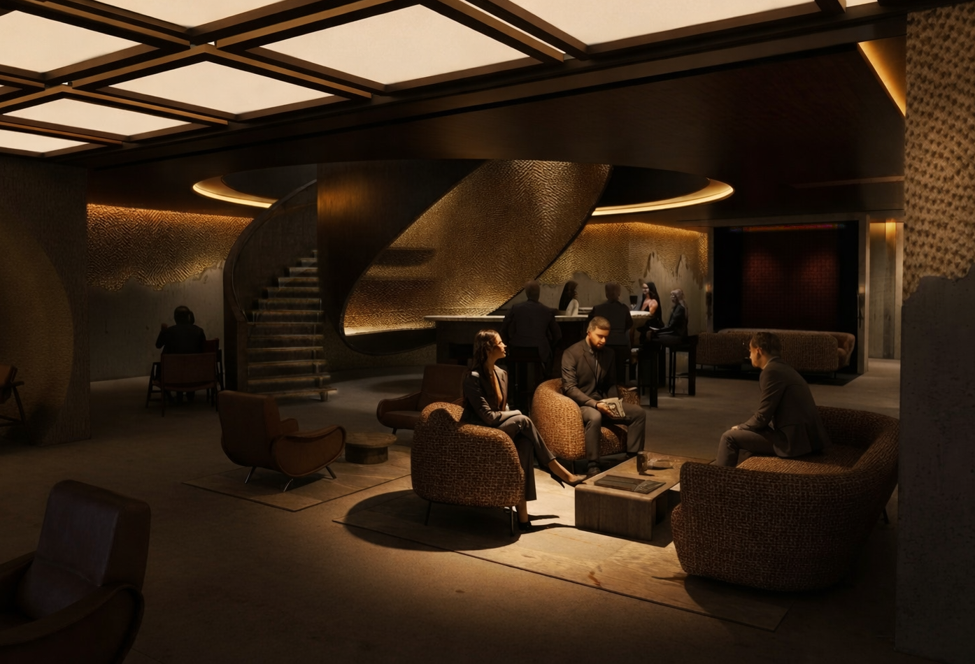 add wine bottles on shelves in center of cylindrical element