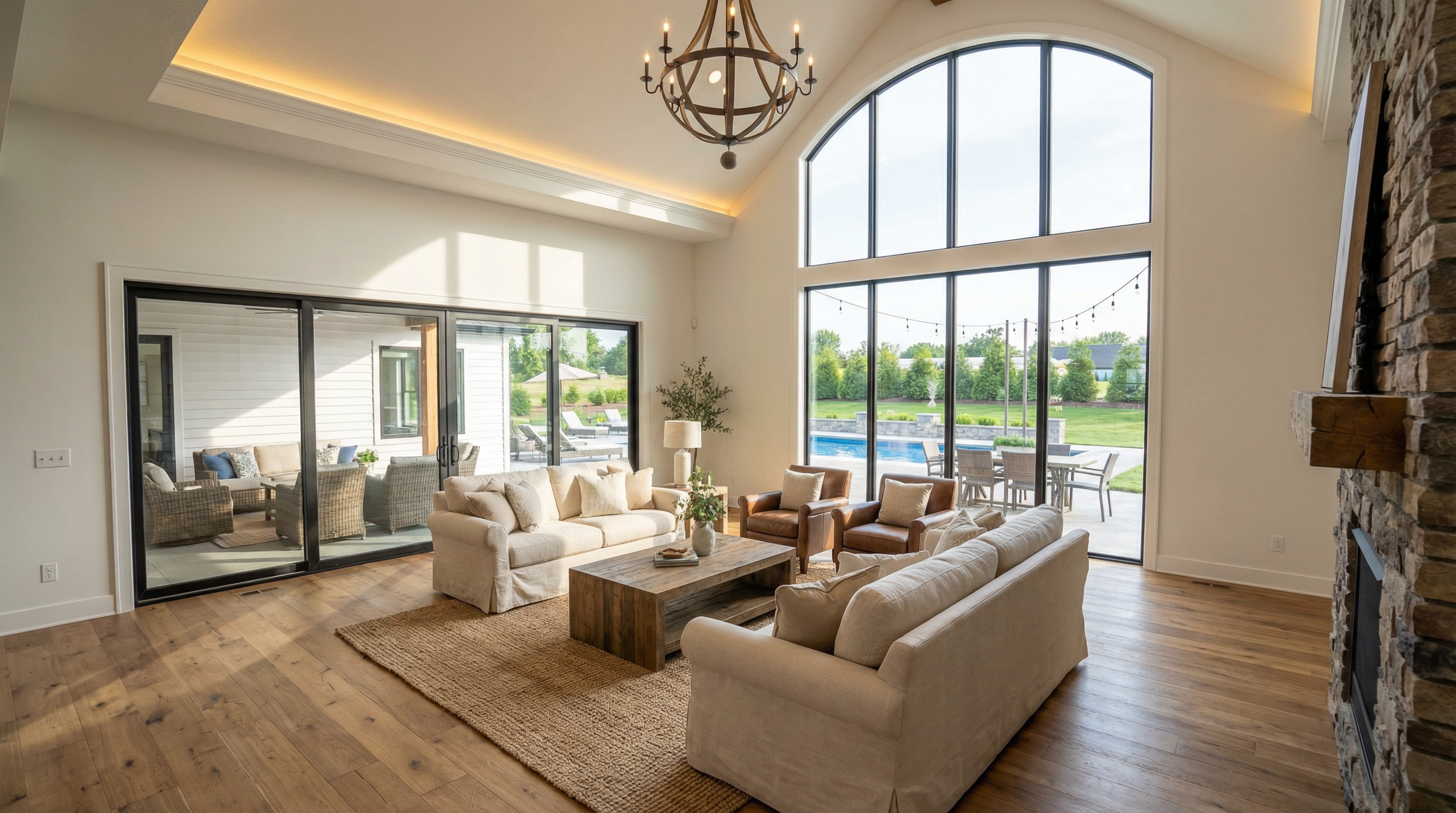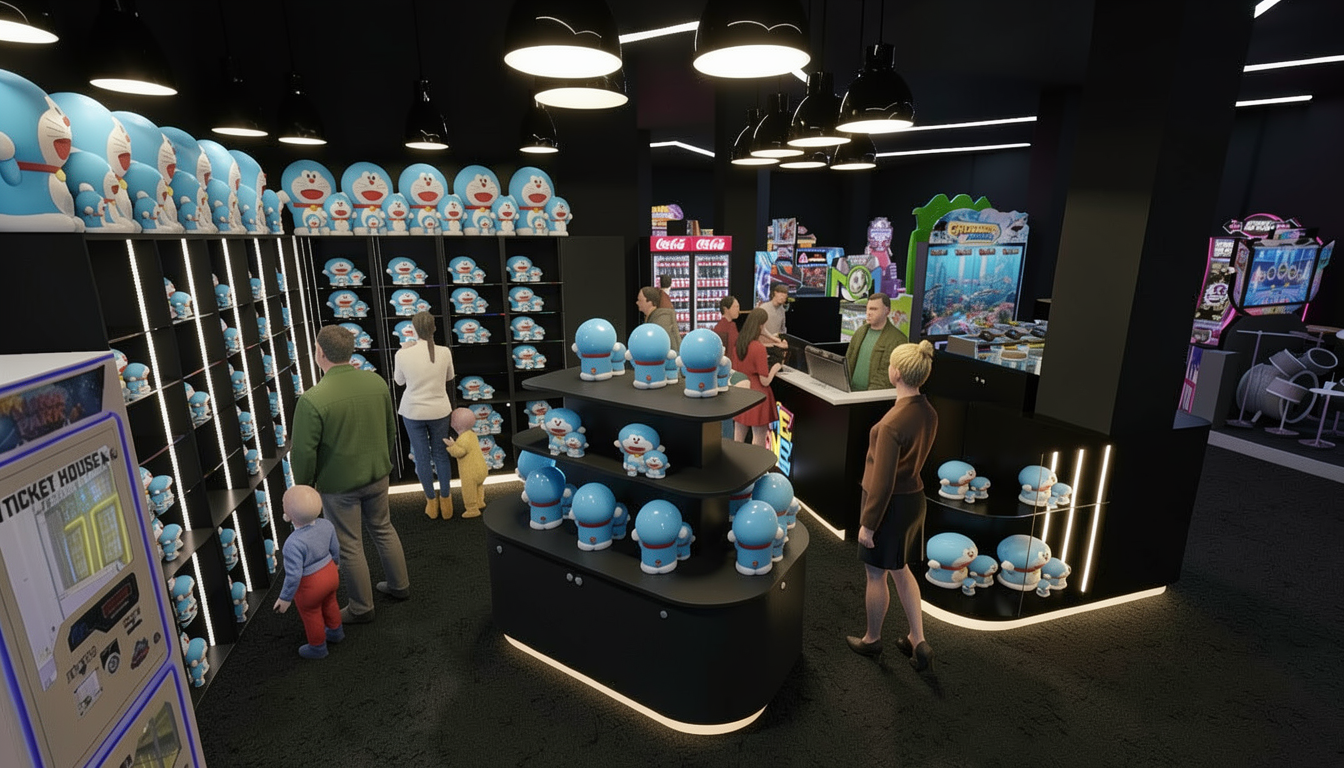 transform the provided interior image into a high end photorealistic architectural render this is a strict image to image refinement do not alter the design keep everything exactly identical to the reference image design geometry lock same spatial configuration same proportions and scale same furniture shapes geometry and positions same ceiling height 10 feet add small recessed white ceiling light fixtures and centered in the hallway add realistic frame to all doors the same color as the door on the image and hardware must be brush chrome just like door handle no objects moved resized redesigned recolored replaced or reinterpreted material consistency lock use exactly the same materials colors textures and finishes as the reference image no variation no reinterpretation no color shift no scale change flooring finished raw concrete floor add very subtle surface roughness only walls limewash plaster as image exact colors ceiling smooth painted gypsum glass wall slight reflexion and transparency of the glass section in the right wall lighting preserve existing white fixtures and suggested lighting slightly turned on floor trim must be small thin commercial vinyl trim that match exactly the color of the wall or paint detail behind wall signs must remain exactly as on the image human presence controlled add a person coming from left to right a the end of the hallway add a woman and a kid coming out of the light blue door