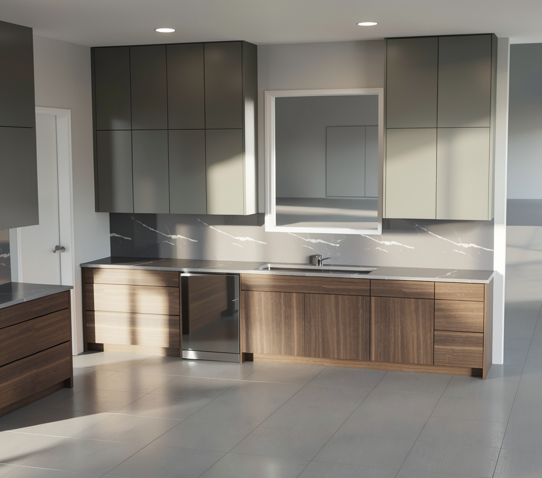 create a high end photorealistic render of a bright luxurious bedroom with a refined and expensive feel the materials should feel authentic with realistic texture the flooring is matte with a polished cement look in a sand off white shade cohesive and elegant the lighting should be warm natural and balanced add beautifully arranged high quality bed linens with soft folds and a soft aesthetic the overall mood should feel contemporary sophisticated and editorial as if photographed for a luxury interior design magazine keep the initial materials like cotton linen rattan light oak wood n the right curved s shaped pendant light made of translucent stone onyx like material with natural veining in warm beige tones cylindrical ends continuous organic wave form in the center suspended with thin black cables and brass metal brackets preserve exact shape proportions and placement enhance only material realism translucency and stone texture the headbed is cotton linen fabric off white color and only on the right there is rattan