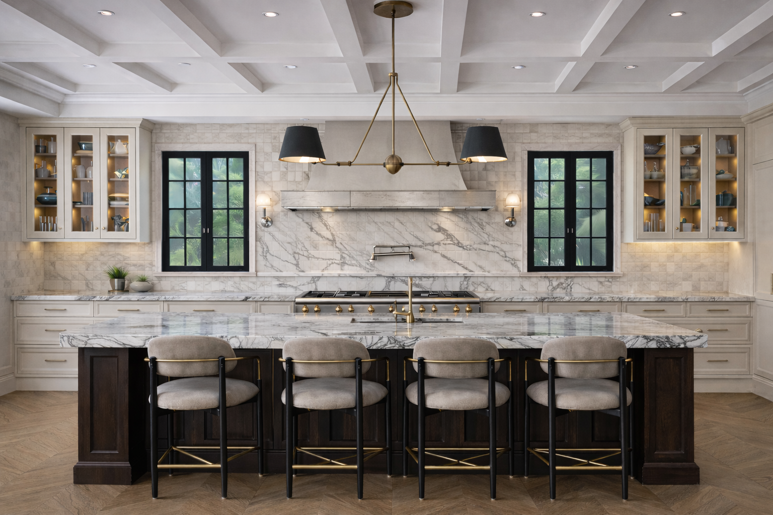 make this kitchen come even more to life with rich marble and detailed cabinets architecture
