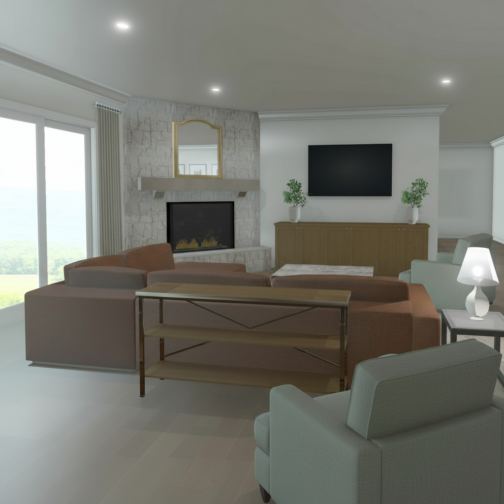 add white oak flooring clean counter tops remove construction materials add under counter wine fridge in the hole style as coffee bar clean up counter tops