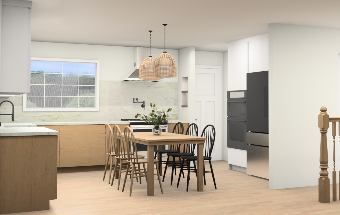 add recessed lights to the ceiling change the view from the window to more green nature and the glass to be cleaner change the shade of the backsplash to a lighter one the walls are white