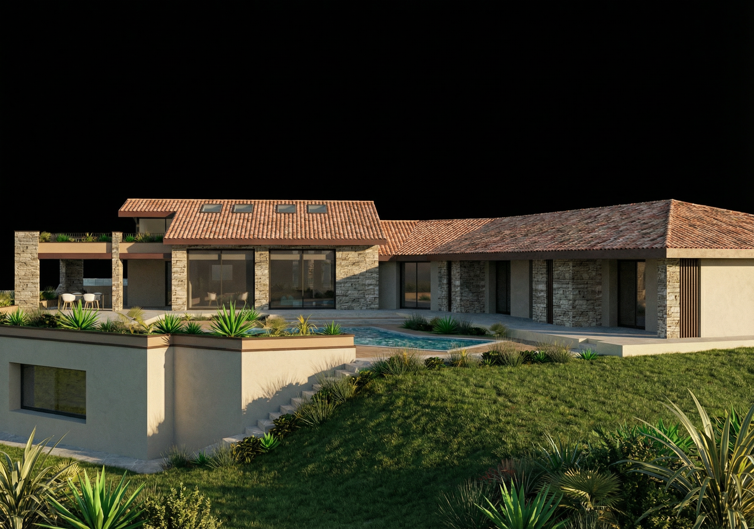 exterior shot solo cambiar texturas de la imagen base solo aplicar las textruas de la imagen de referencia no modificar los elementos de la imagen base conservar las escalas y proporciones