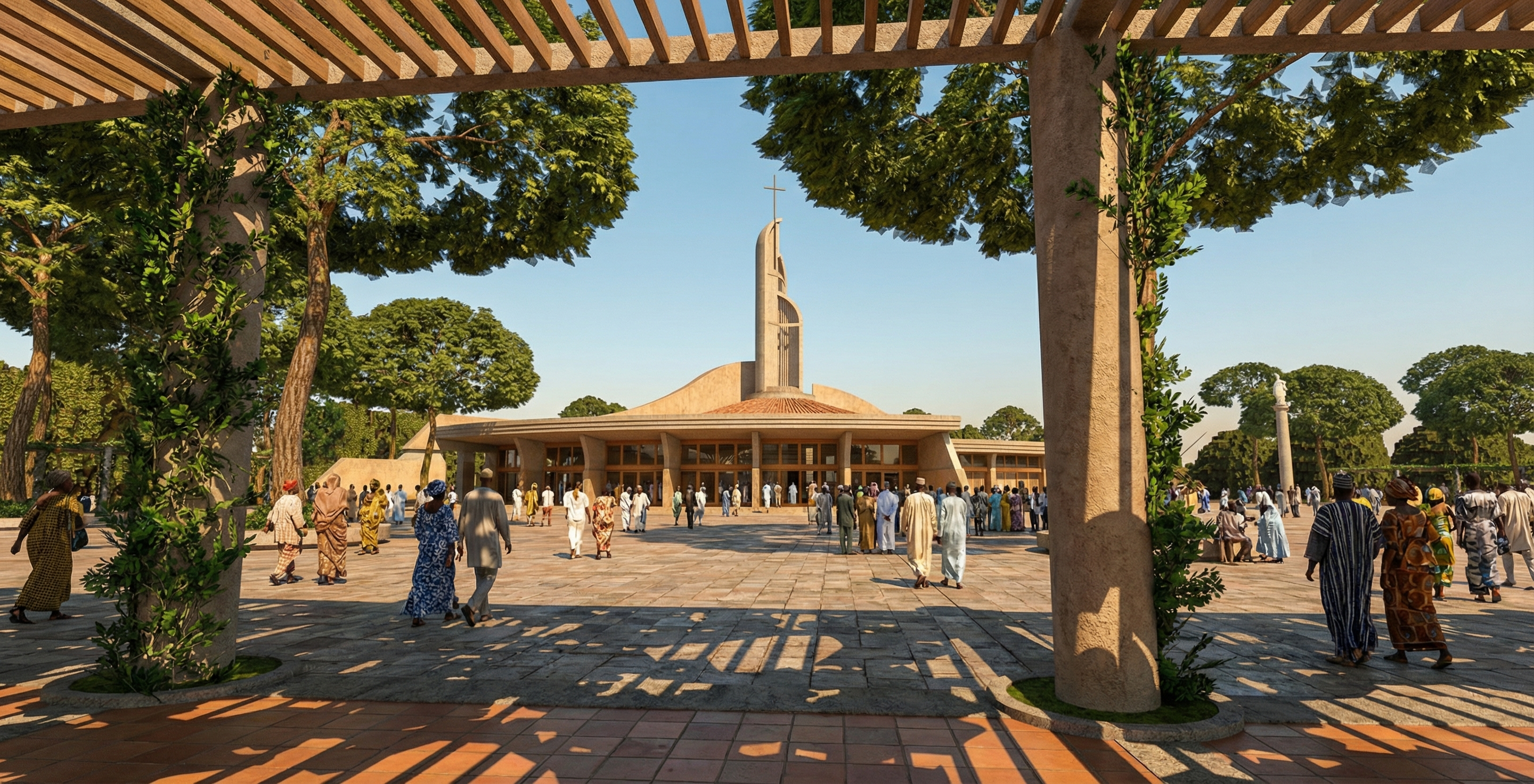 nuova chiesa da costruire in africa costa d avorio molta folla metti anche una banda e dei bambini in primo piano che giocano tra loro