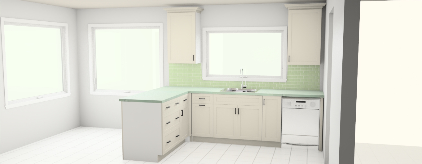 add the countertop on the peninsula go down to the ground waterfall style