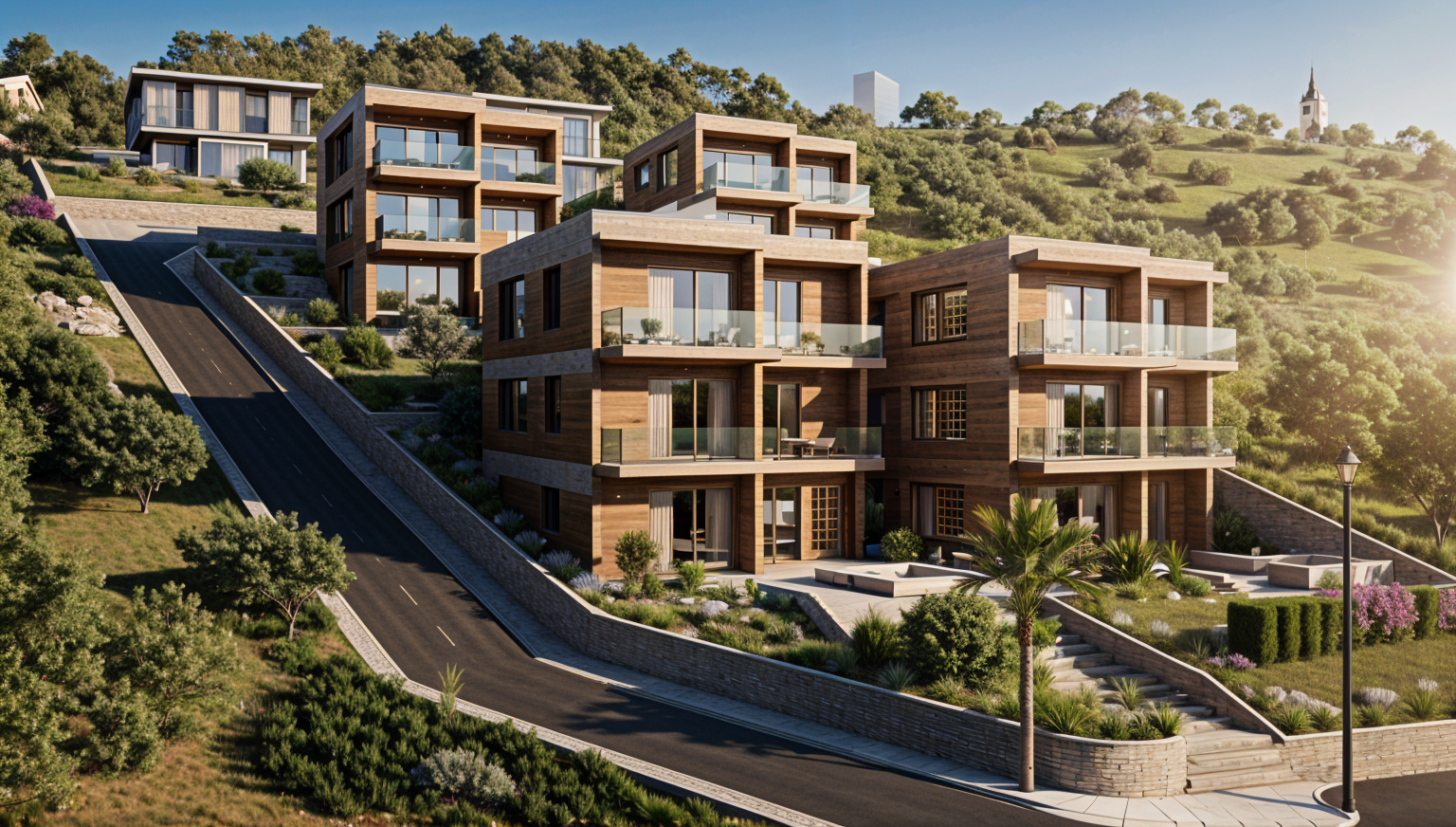 modernist exterior shot make a modern london soho building using british limestone red brick metal architecture