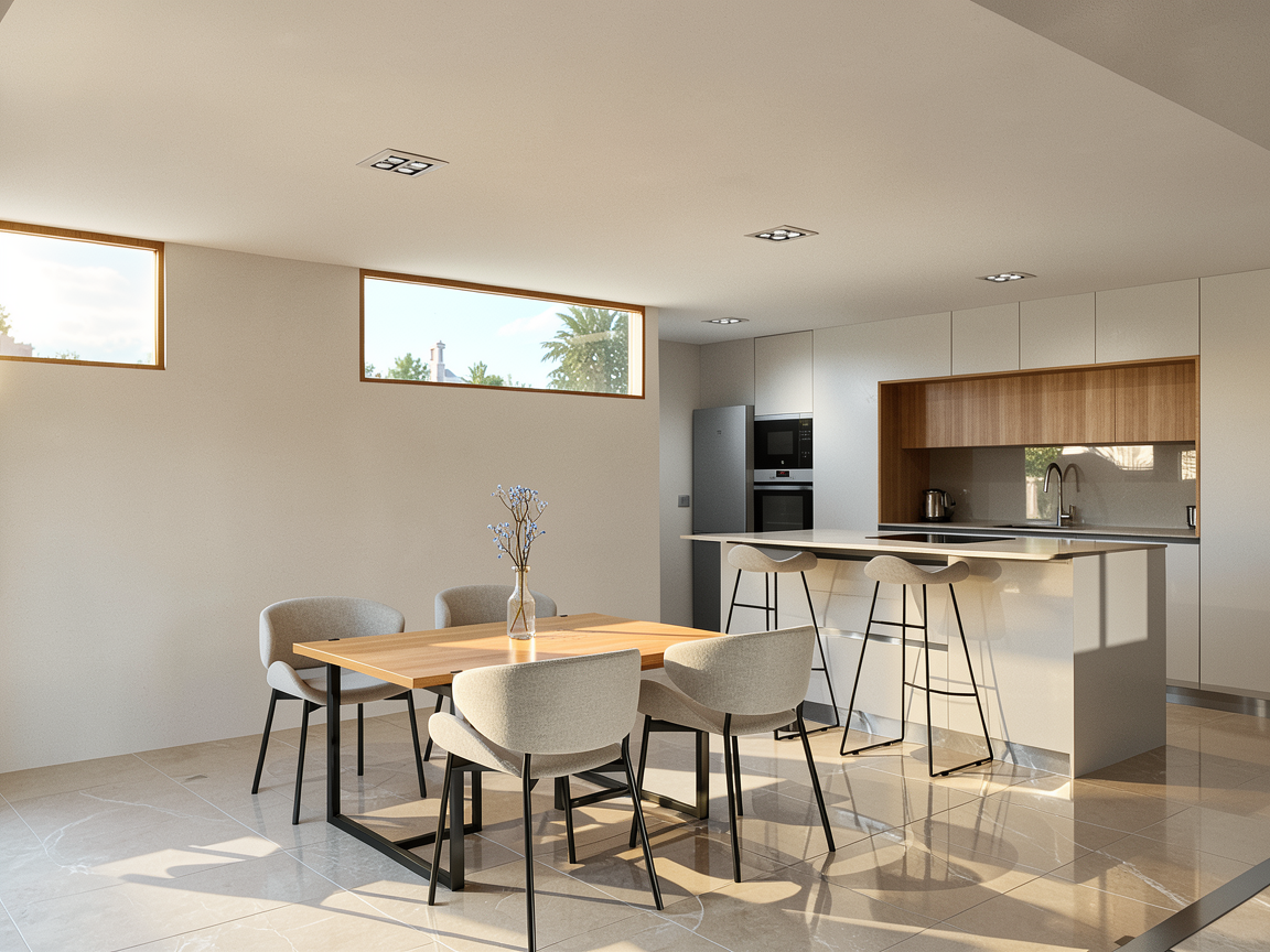add lighting and change the table to an oak table with roundede corners