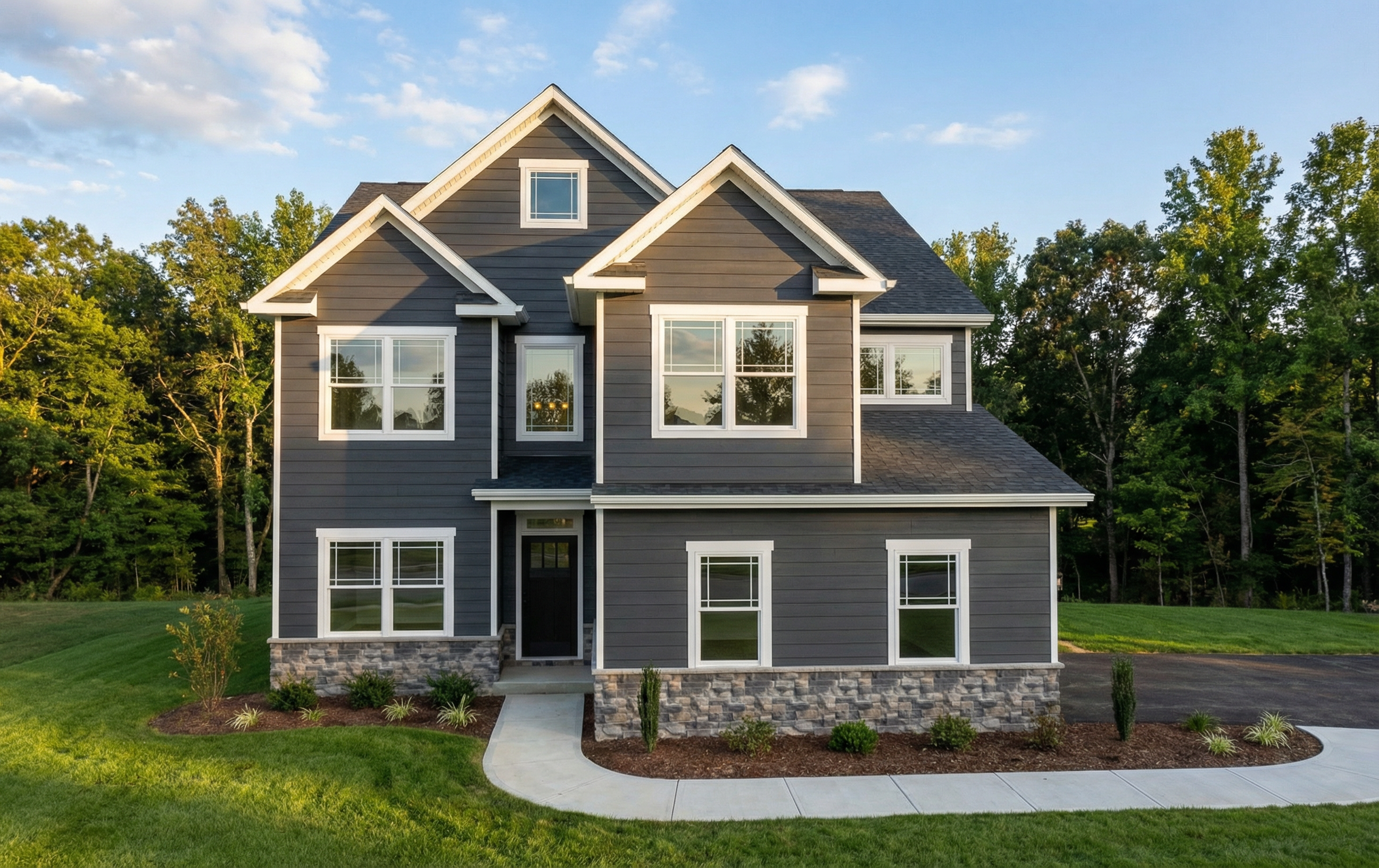 create a streetscape with both homes on the same side of the street in a suburban community in indiana