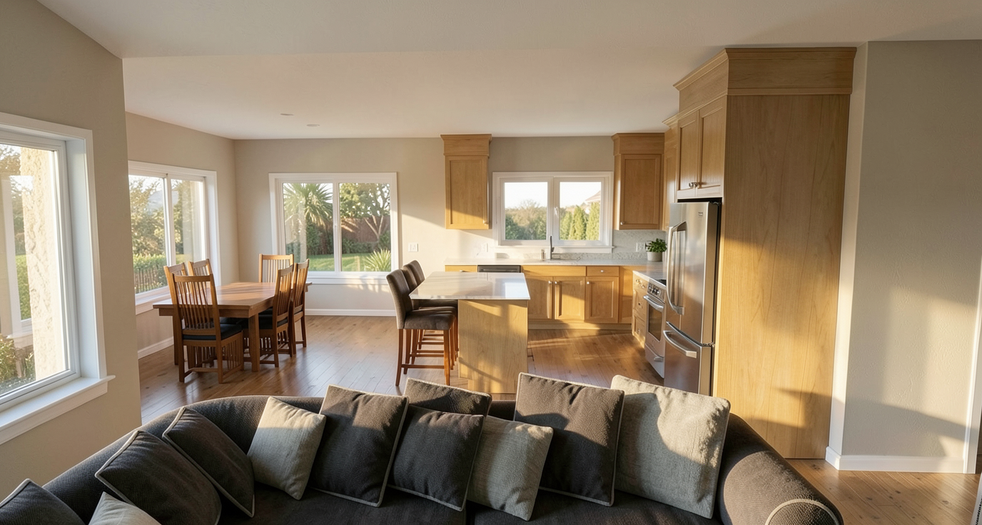show dark brown garage doors and windows siding on boxed window over garage doors