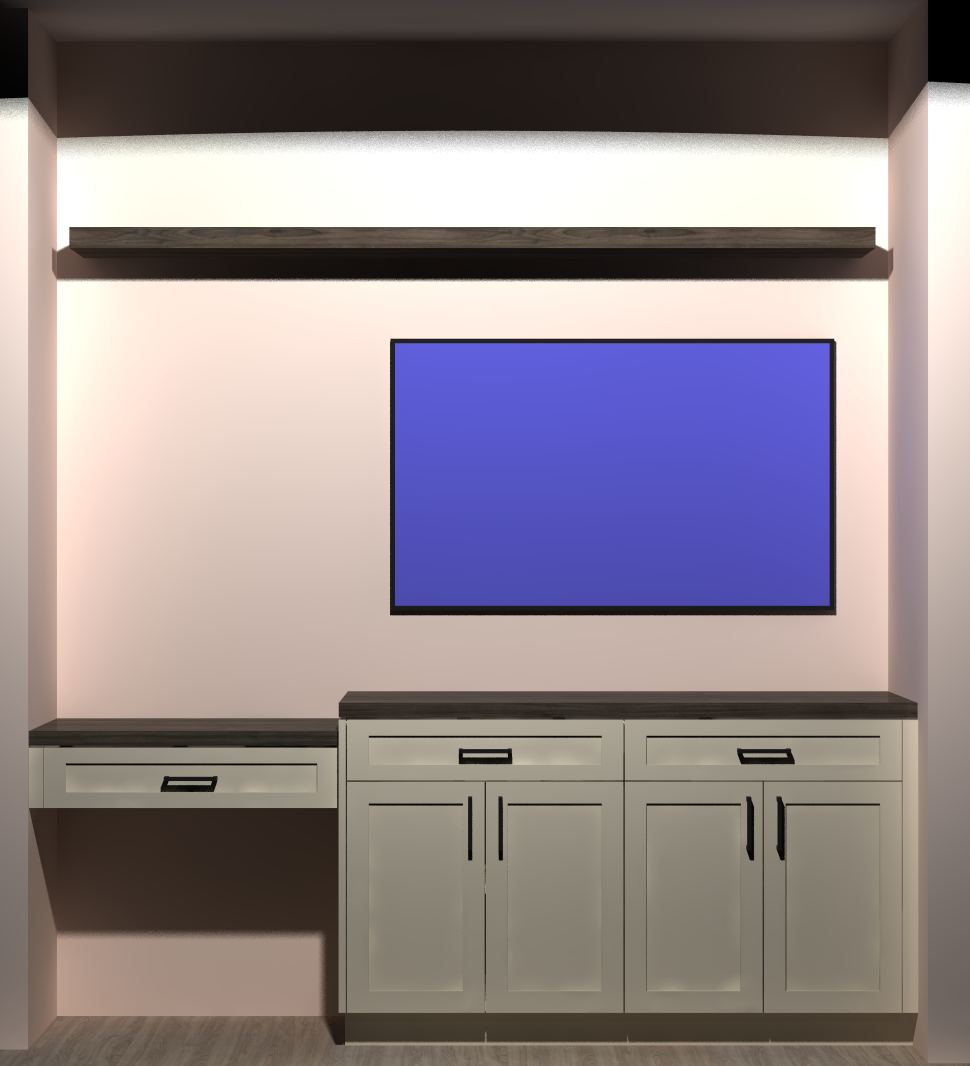 add decorations add tv add chair at desk remove light strip add laptop