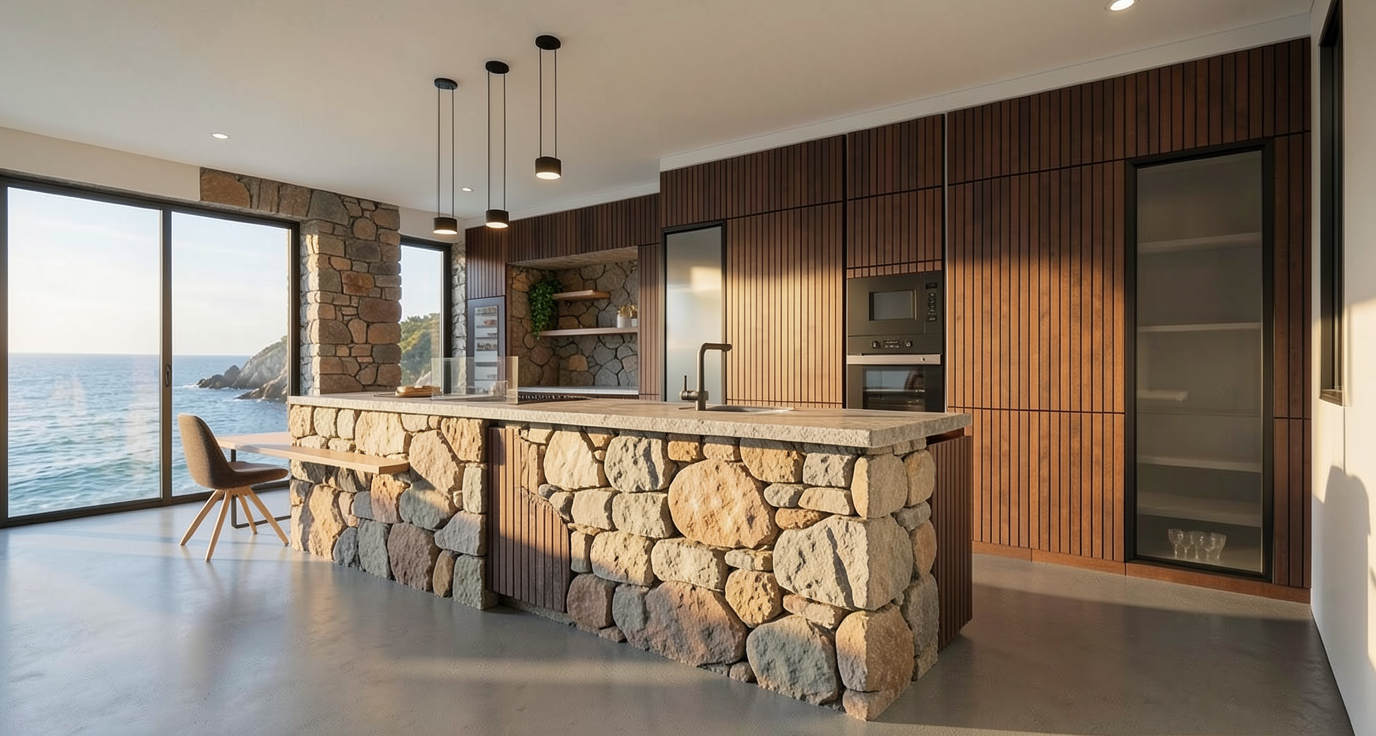 change the texture of the floor it is not correct try to apply a material with a more uniform look on grey tones dont change any other detail of the image apart for the texture of the flooring less and bigger stones must be visible in the texture