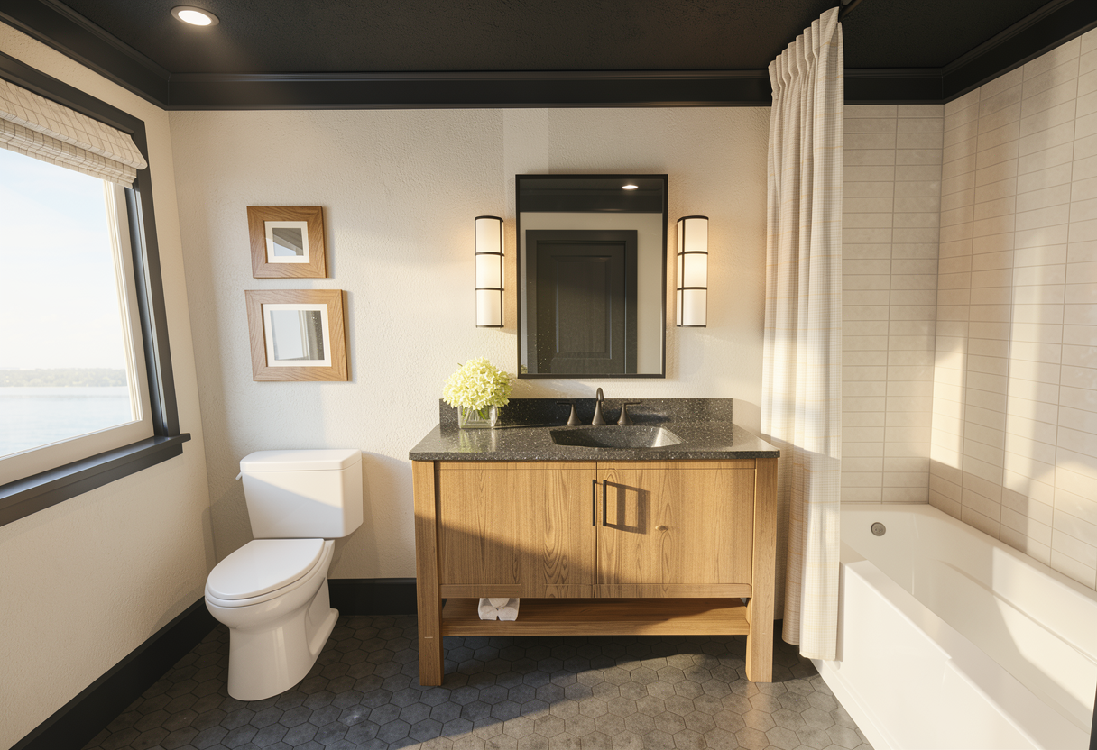exterior render into a photorealistic summer housein greece keep exactly the same geometry structure windows and material camera view do not change proportions or architectural layout use warm mediterranean summer light late afternoon feeling curtains behind windows natural plants style modern greek summer house minimal calm elegant use realistic architectural photography 24 35mm lens natural colors soft shadows high realism clean composition professional architectural visualization
