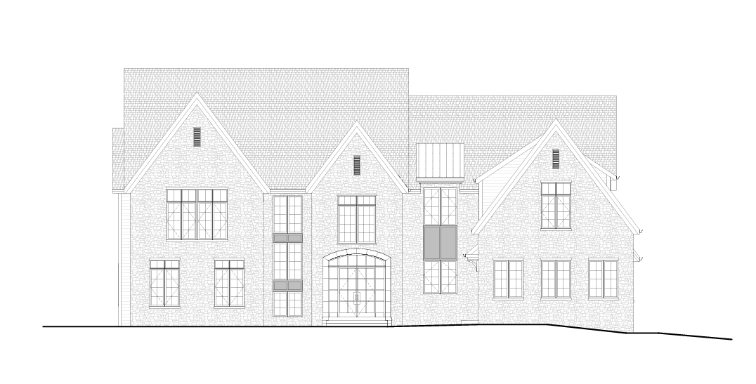 please give me a photo realistic image of this rendering using bronze windows from the company marvin a black steel door and stone from the company old world stone type is amarillo rustic ashlar use a dark roof but not black