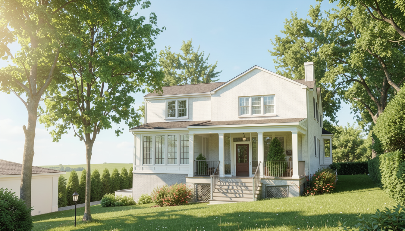 this rendering you did and its perfect don t change the house at all keep the house exactly the same i want to change the background the background is and open field with montana trees far off in distance the hill slope up slightly to the right and dropps off dramatically to the left