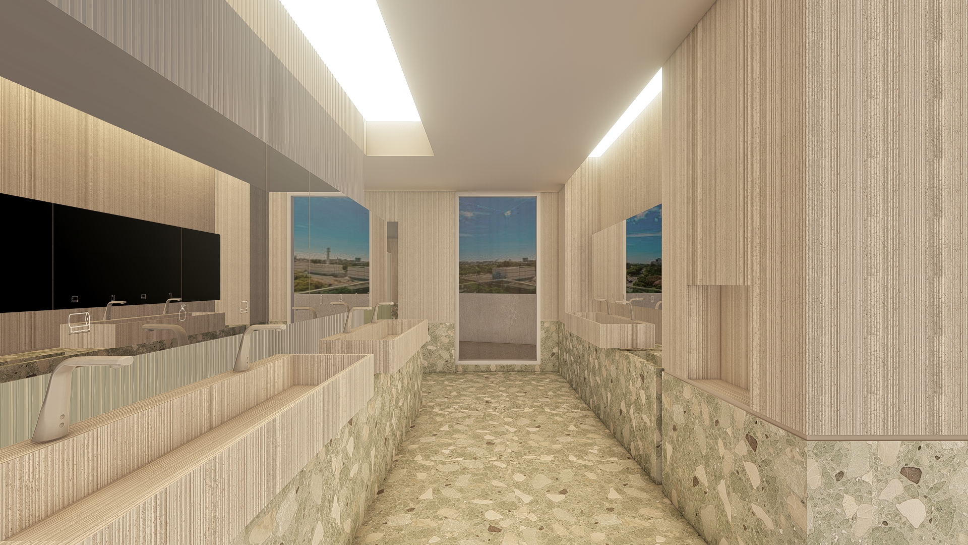 generate photorealistic renders keep the existing materialities light colored flooring furniture preserve the structure and furniture models to reflect the original images accurately el revestimiento ranurado modificarlo por blanco