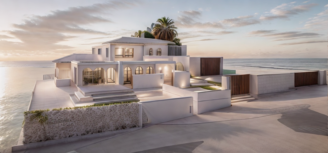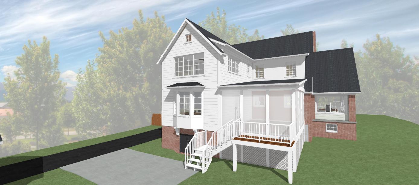 suburban rear elevation design with trees and a clear sky in the background grass backyard