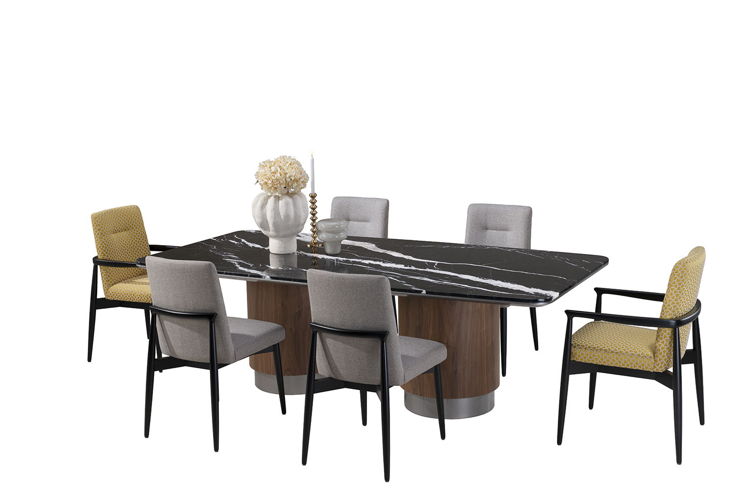 make the table bigger with four chairs on each side with the same pattern