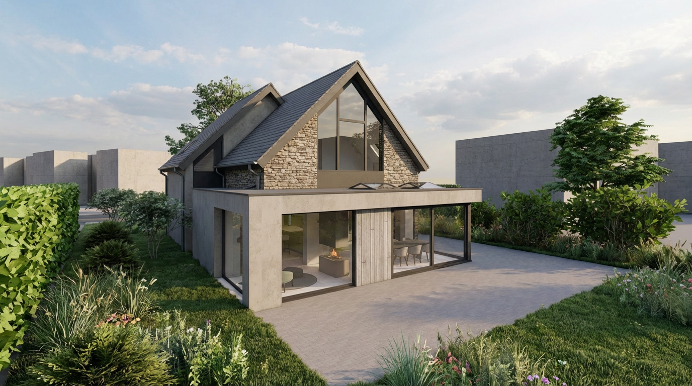 convert this floor plan into a realistic isometric 3d view of a full house show the space from an elevated angle with furniture walls and details visible skandinavischer stil fischgr t parkett m bel modern wei beige altbaut ren in wei m bel aus holz in eiche hintergrund immer wei links im oberen eck ist eine treppe das objekt an der wand rechts davon ist ein fensster keine t r ganz oben ist ein fenster keine t r die eingangst r is rechts daneben use the same furniture as shows on the plan do not change the orientation of the floorplan