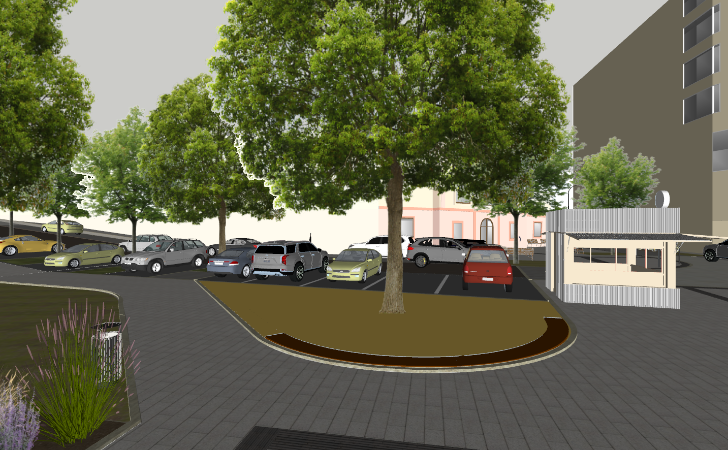 ultra realistic architectural visualization based strictly on the provided raw sketchup view preserve exact geometry proportions camera angle composition and architectural details do not redesign or alter the building enhance only with realism add realistic materials with physically accurate textures natural wood grain brushed concrete glass reflections subtle imperfections micro surface details use high dynamic range lighting with soft global illumination and realistic shadows create a lively atmosphere add naturally positioned people interacting casually walking talking using phones subtle motion blur on some figures for realism include small groups rather than posed characters add a few animals appropriate to the setting e g dog on a leash birds in the sky avoid people and dogs in the middle of the road enhance environment with greenery slight wind in trees varied vegetation tones small urban details parked cars benches subtle signage add depth with atmospheric perspective and realistic sky conditions golden hour soft overcast choose whichever enhances the mood cinematic composition photorealistic rendering 8k detail realistic depth of field natural color grading slightly warm tones architectural photography style shot on full frame camera 35mm lens maintain realism over stylization avoid cartoonish or ai looking artifacts