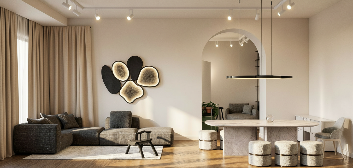 close the window behind the sofa the curtain must cover it and it should not be visible walls and ceiling light sand color warm and cozy environment photorealistic image in 4k