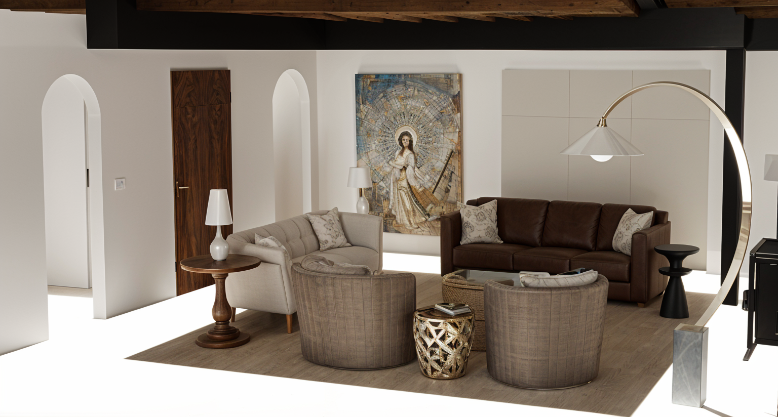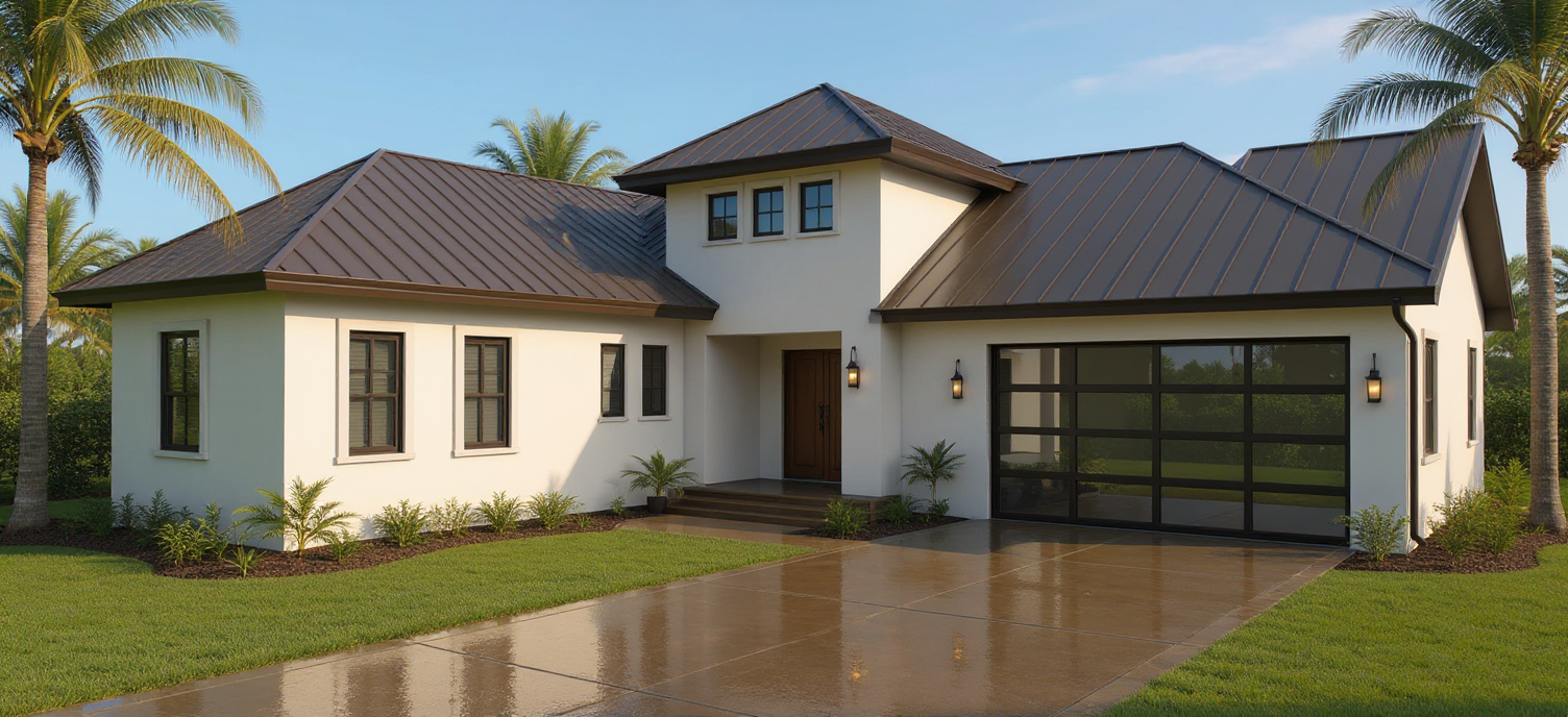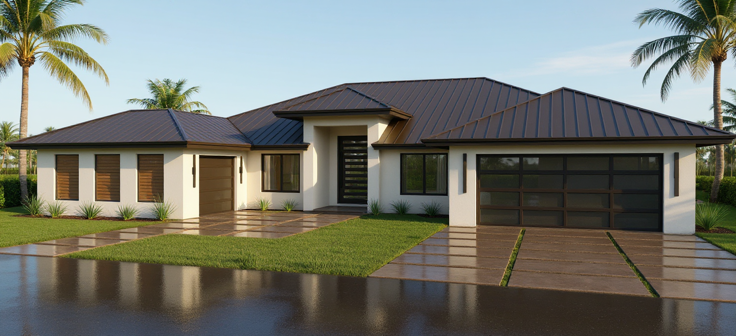 contemporary exterior shot render a beautiful and modern house with a luxurious poolside view the walls of the house are a sleek white the roof has a soft gray tone and the windows are framed with dark oak accents the pool is a vibrant turquoise blue surrounded by elegant light beige stone tiles the landscape features lush green lawns with an inviting atmosphere bordered by subtle gray pathways set the scene during a clear sunny day with soft shadows and a tranquil ambiance architecture