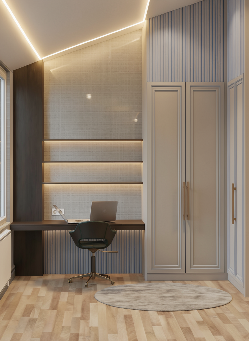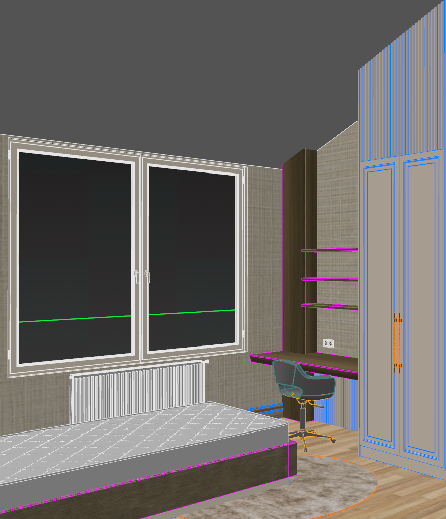 there should be a sea view outside there should be bedding on the bed the closet models should remain the same