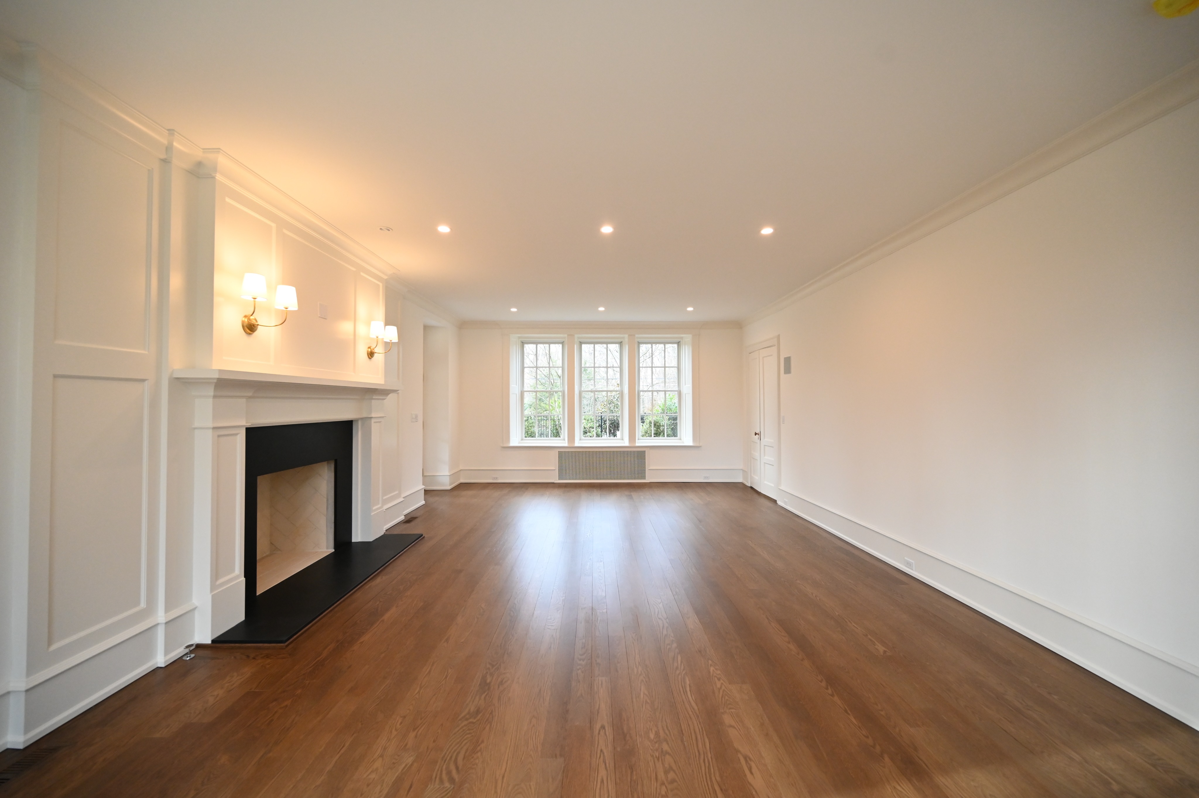 add couches chairs and a full wall of bookshelves with a tv on the right side
