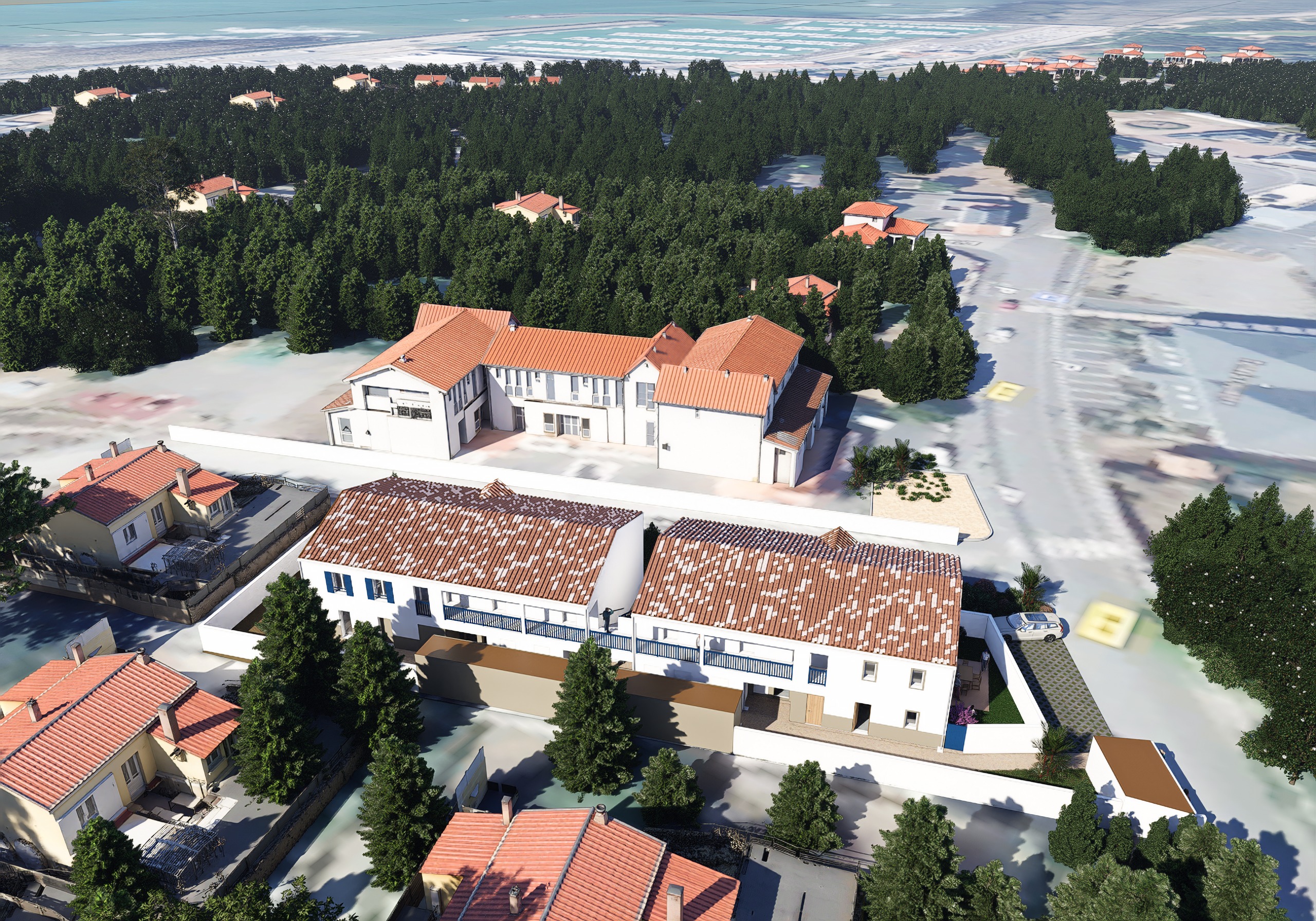 ultra photorealistic drone view keep exact building shapes exact positions preserve port and voats exact proportions do not modify architecture do not invent elements enhance realism only realistic textures natural lighting global illumination soft shadows high detail real estate photography style 4k