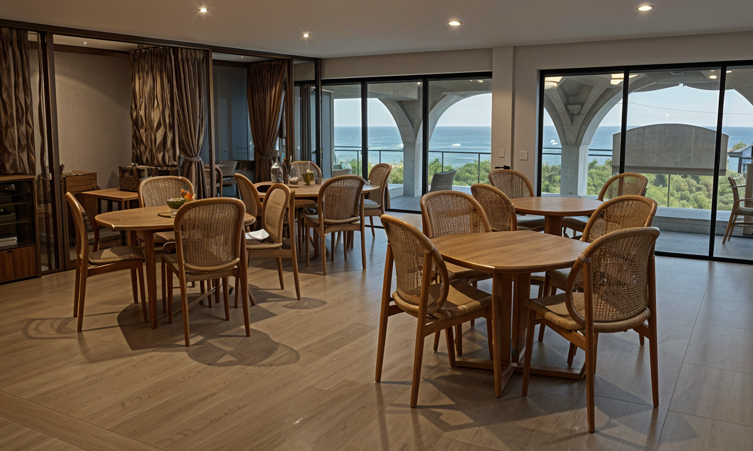 keep the same architecture layout and furniture placement including the kitchen in the back wall maintain the original facade openings and wood structure upgrade materials and lighting to look realistic and architectural use soft daylight neutral tones and tactile surfaces like oak plaster linen terrazzo and matte metal the space should feel contemporary minimalist and warm in the aesthetic of mal chmel or norm architects not scandinavian or classical keep the mood calm natural and slightly cinematic architecture