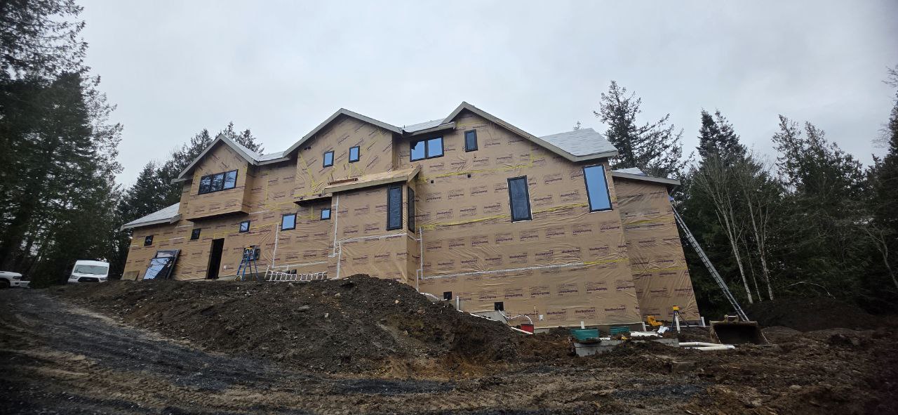 black roof change dirt road to pavers siding needs to be a mix of vertical and horizontal simple landscaping there are windows in 2 floors on the very right